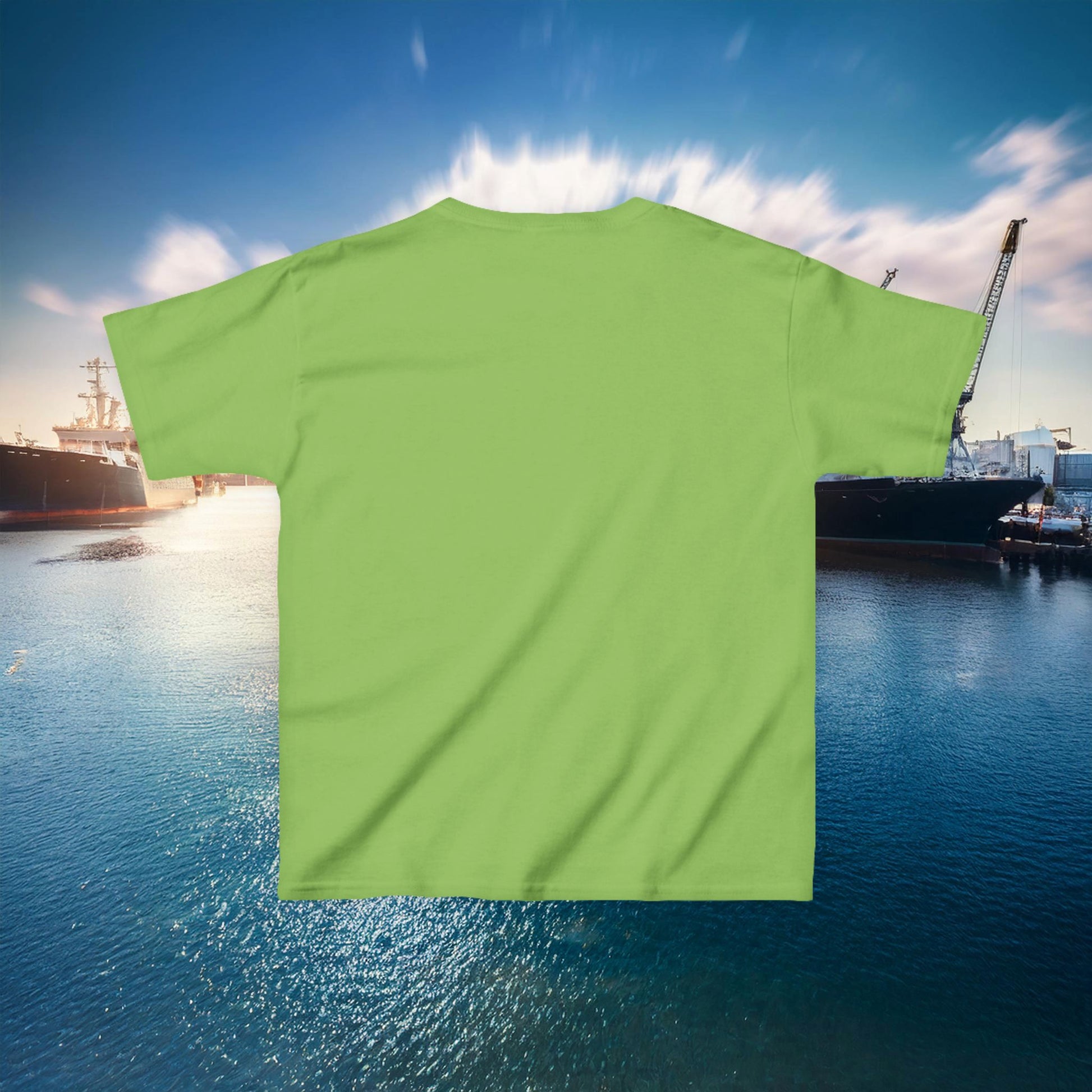 This nautical themed anchors aweigh kids heavy cotton tee is perfect for everyday use. The fabric is 100% cotton for solid colors. Polyester is included for heather-color variants. The shoulders have twill tape for improved durability. The collar is curl resistant due to ribbed knitting. There are no seams along the sides.