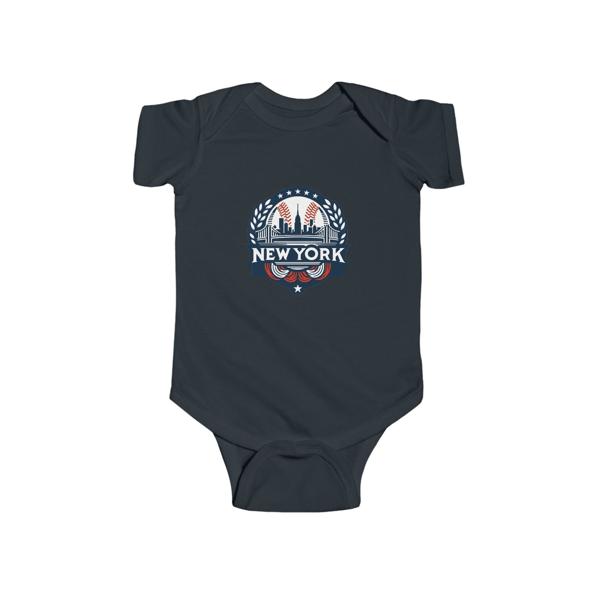 Baby clothing needs to be both durable and soft. With this New York Yankees themed infant fine jersey bodysuit, youths get just that. The fabric is 100% cotton for solid colors. For heather colors, polyester is included. There are seams along the sides of this product. All bindings are made with ribbed knitting for improved durability. There are plastic snaps at the cross closure for easy changing access.