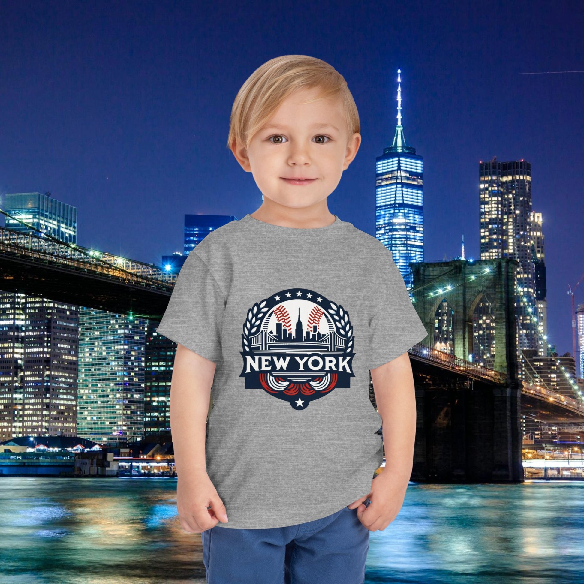 Uplift any child's wardrobe with this custom New York Yankees themed kid's t-shirt. The Bella Canvas short sleeve tee for toddlers is a 100% Airlume combed and ring-spun cotton jersey with a tear-away label for extra comfort. Choose your favorite color and get a unique design that toddlers will happily wear every day.