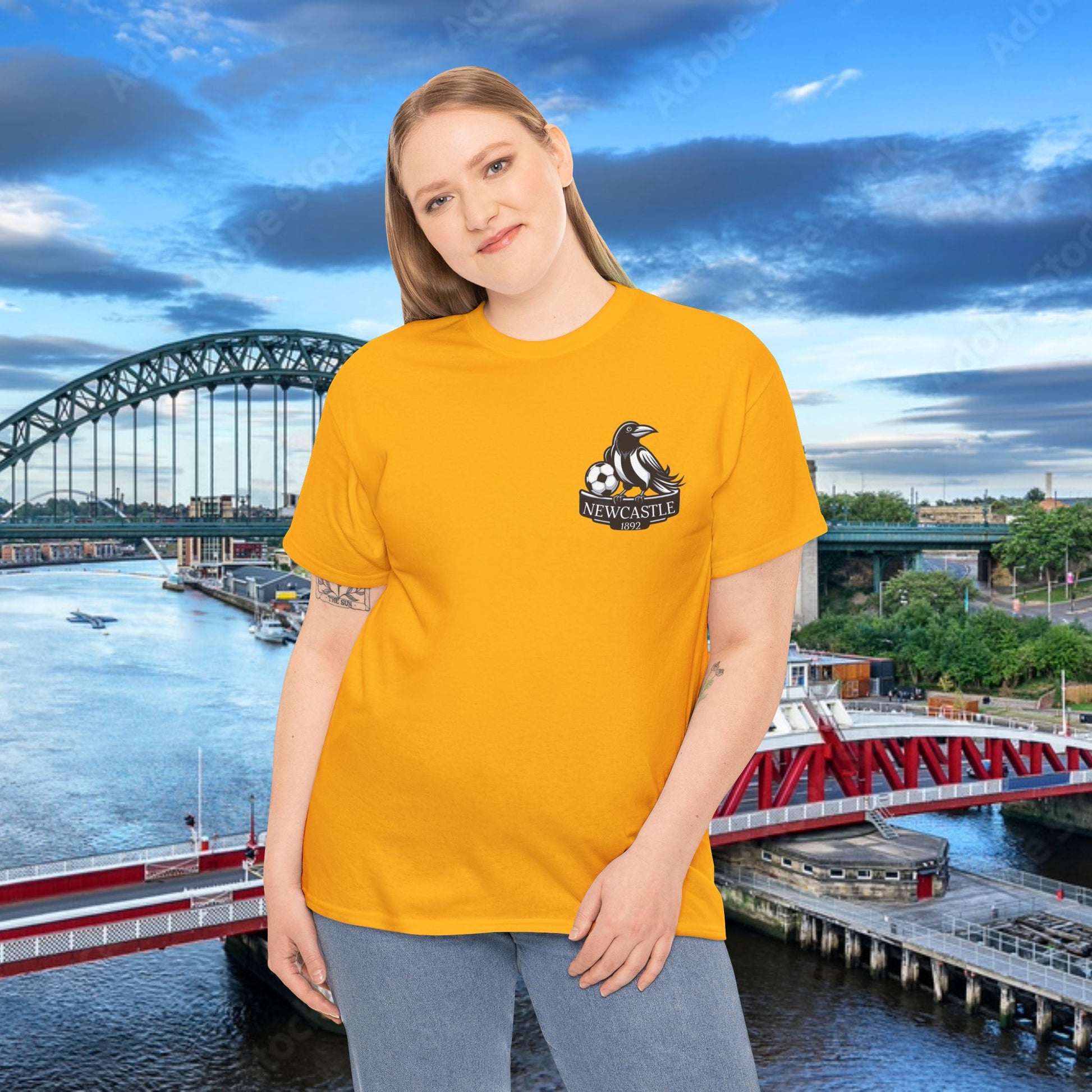 This Newcastle United themed heavy cotton tee is the basic staple of any wardrobe. It is the foundation upon which casual fashion grows. The specially spun fibers provide a smooth surface for premium printing vividity and sharpness. No side seams mean there are no itchy interruptions under the arms. The shoulders have tape for improved durability.