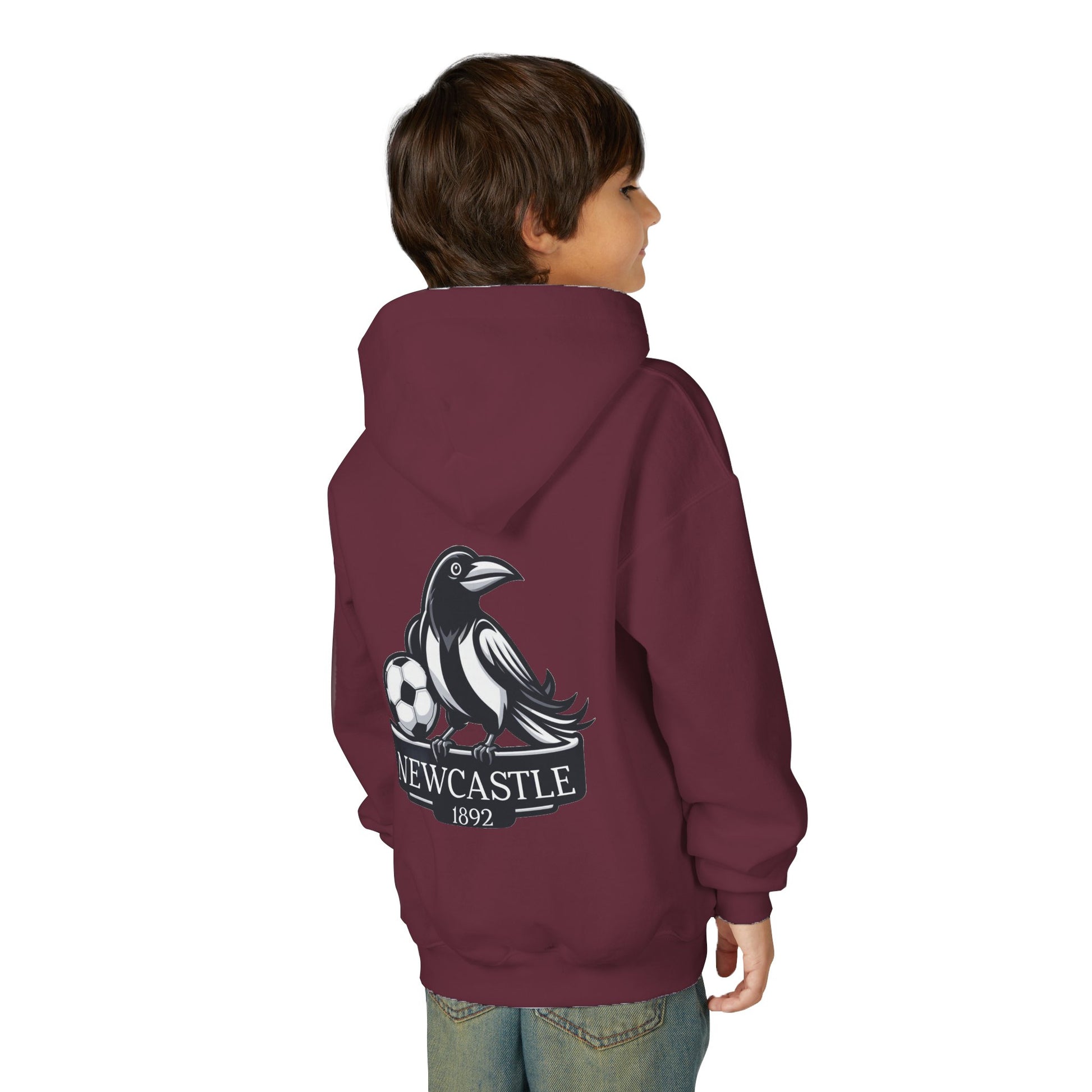 This Newcastle United themed youth blend hooded sweatshirt is made of ultra-soft, preshrunk fleece that feels wonderful against the skin. The garment is 50% cotton 50% polyester with reduced lint buildup. The front has a kangaroo pocket big enough for both hands. The neck is reinforced with twill taping.