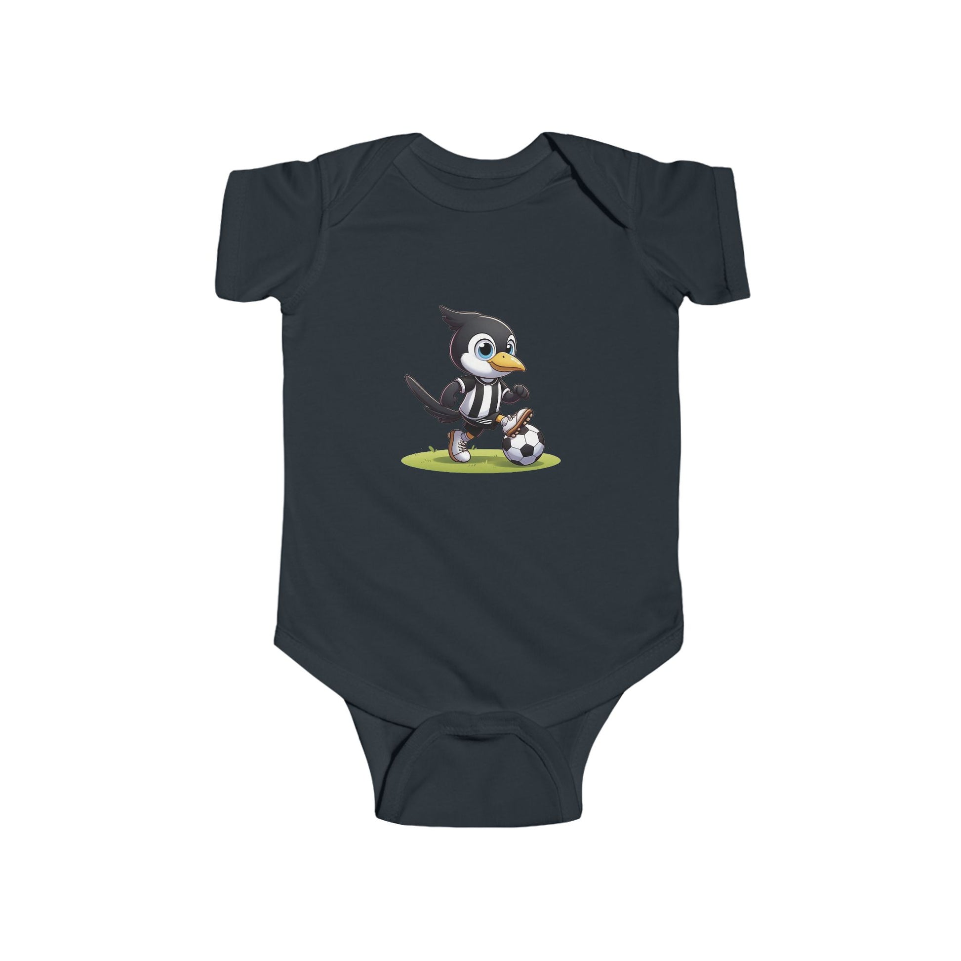 Baby clothing needs to be both durable and soft. With this Newcastle United themed infant fine jersey bodysuit, youths get just that. The fabric is 100% cotton for solid colors. For heather colors, polyester is included. There are seams along the sides of this product. All bindings are made with ribbed knitting for improved durability. There are plastic snaps at the cross closure for easy changing access.