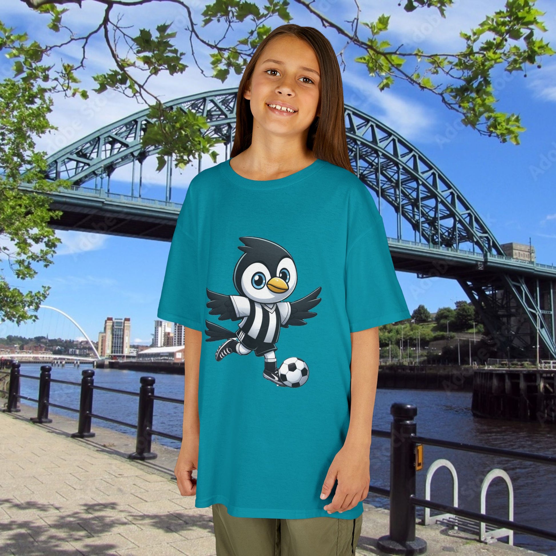 This Newcastle United magpie heavy cotton tee is perfect for everyday use. The fabric is 100% cotton for solid colors. Polyester is included for heather-color variants. The shoulders have twill tape for improved durability. The collar is curl resistant due to ribbed knitting. There are no seams along the sides.