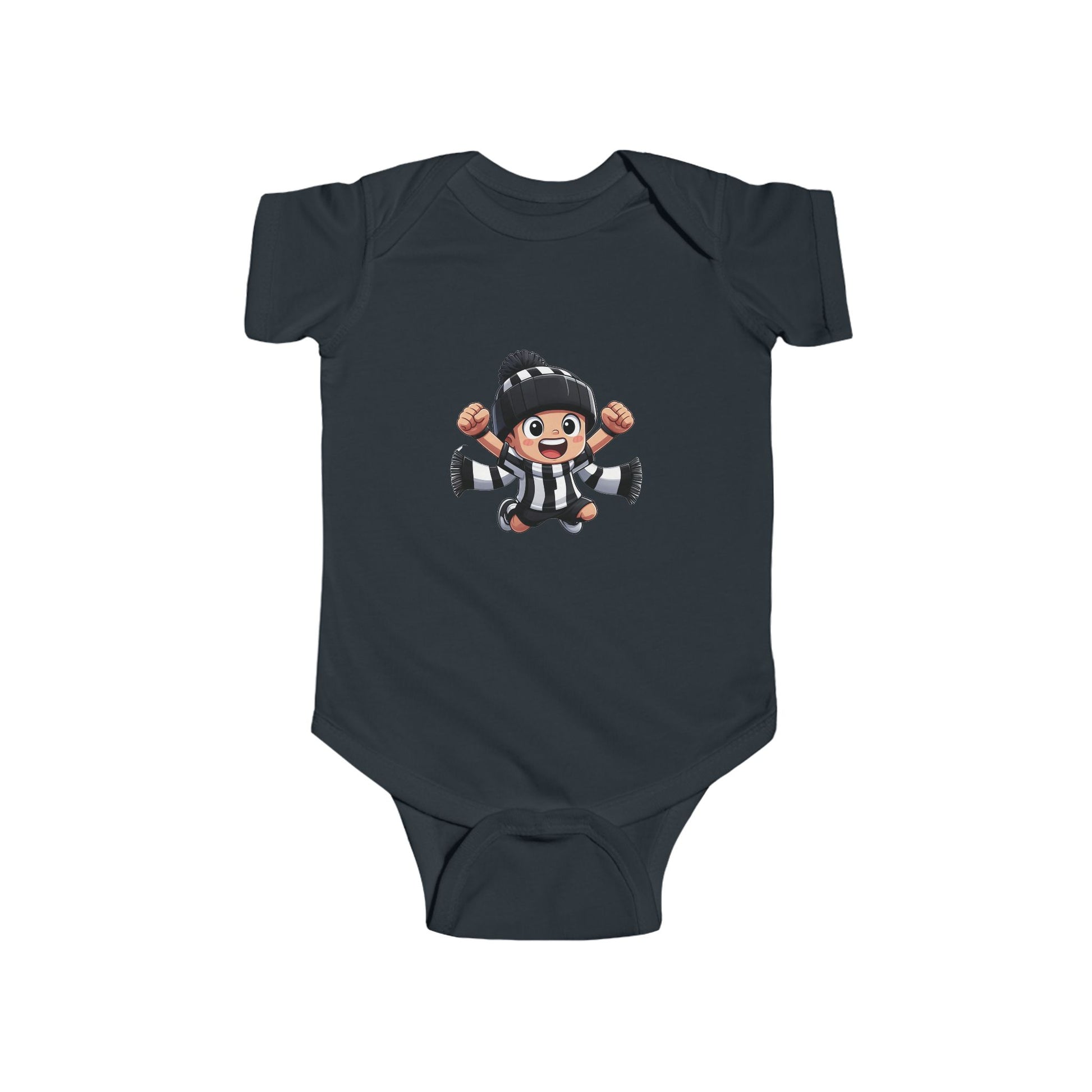 Baby clothing needs to be both durable and soft. With this Newcastle United themed infant fine jersey bodysuit, youths get just that. The fabric is 100% cotton for solid colors. For heather colors, polyester is included. There are seams along the sides of this product. All bindings are made with ribbed knitting for improved durability. There are plastic snaps at the cross closure for easy changing access.