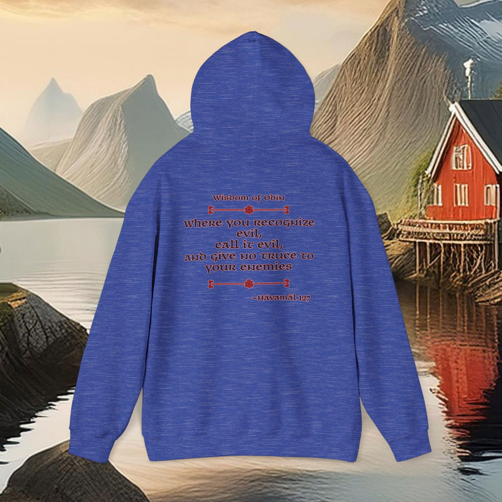 On the back, the design draws from the Wisdom of Odin, quoting Hávamál 127, a timeless reminder that silence in the face of wrongdoing is a choice with consequences. Together, the front and back designs unite Norse symbolism with moral clarity, blending modern resistance with ancient insight.