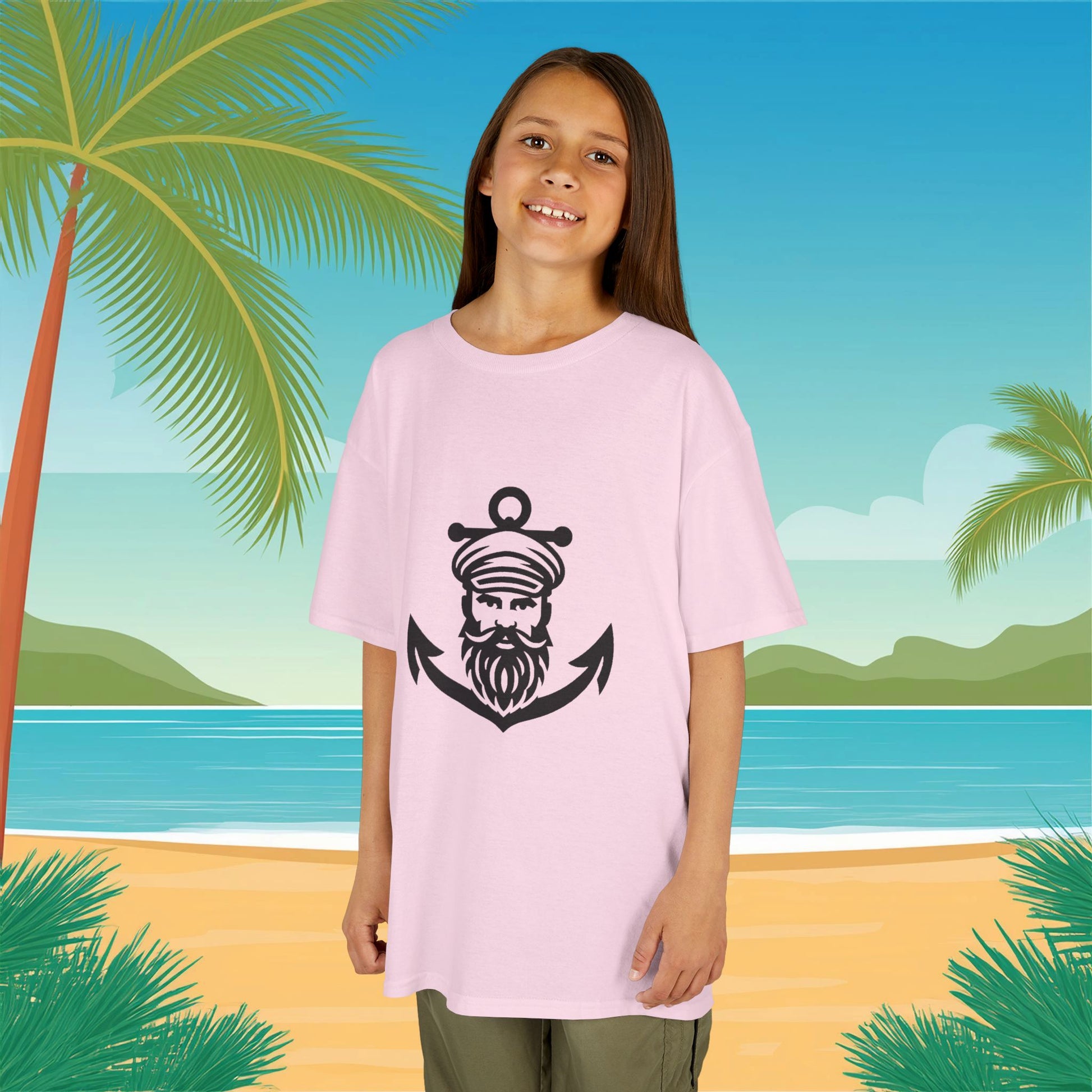 This Nautical themed kids heavy cotton tee is perfect for everyday use. The fabric is 100% cotton for solid colors. Polyester is included for heather-color variants. The shoulders have twill tape for improved durability. The collar is curl resistant due to ribbed knitting. There are no seams along the sides.
