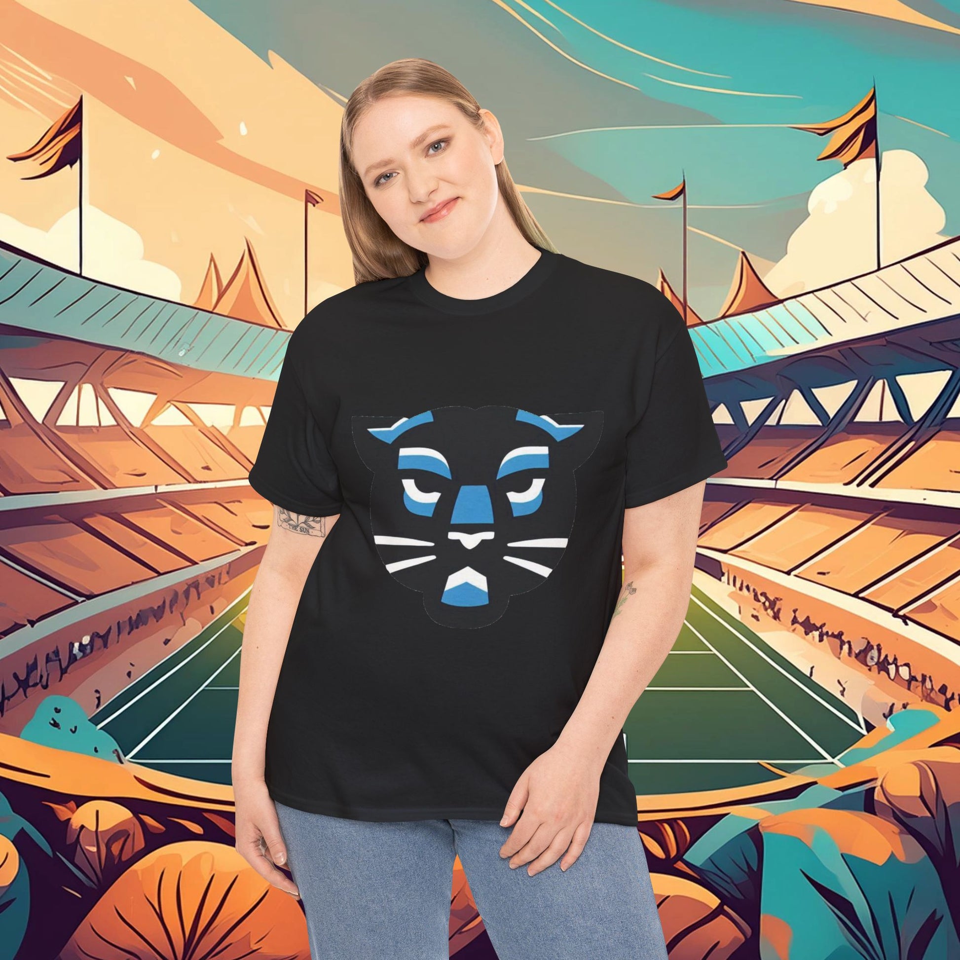 This Carolina Panthers themed heavy cotton tee is the basic staple of any wardrobe. It is the foundation upon which casual fashion grows. The specially spun fibers provide a smooth surface for premium printing vividity and sharpness. No side seams mean there are no itchy interruptions under the arms. The shoulders have tape for improved durability.