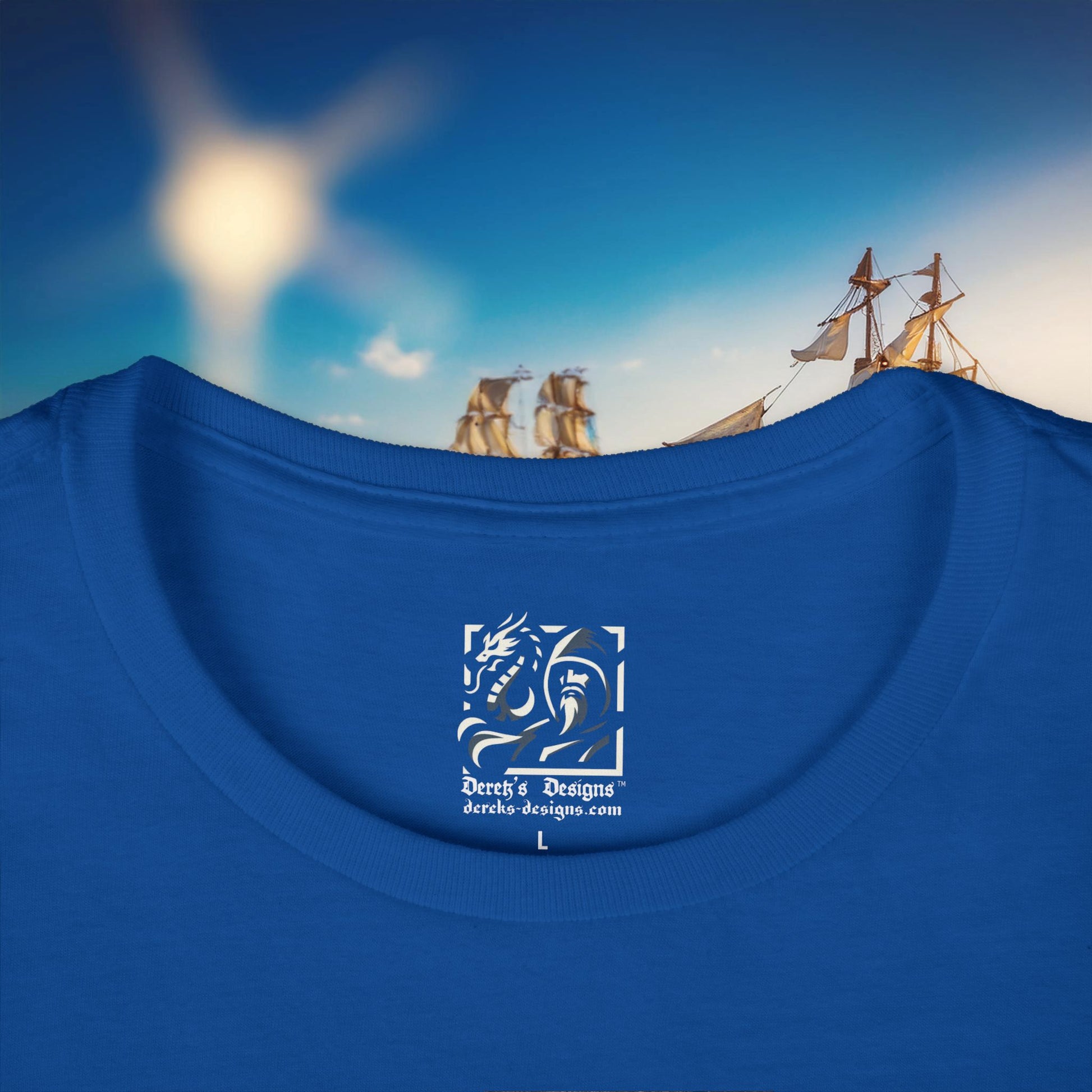 This raccoon pirate woman's softstyle tee is a more feminine take on the classic tee. The sleeves are shortened to reveal some shoulder. The fabric is 100% ringspun cotton for all solid colors. The shoulders are taped with twill to prolong durability. The collar seam is reinforced with ribbed knitting.
