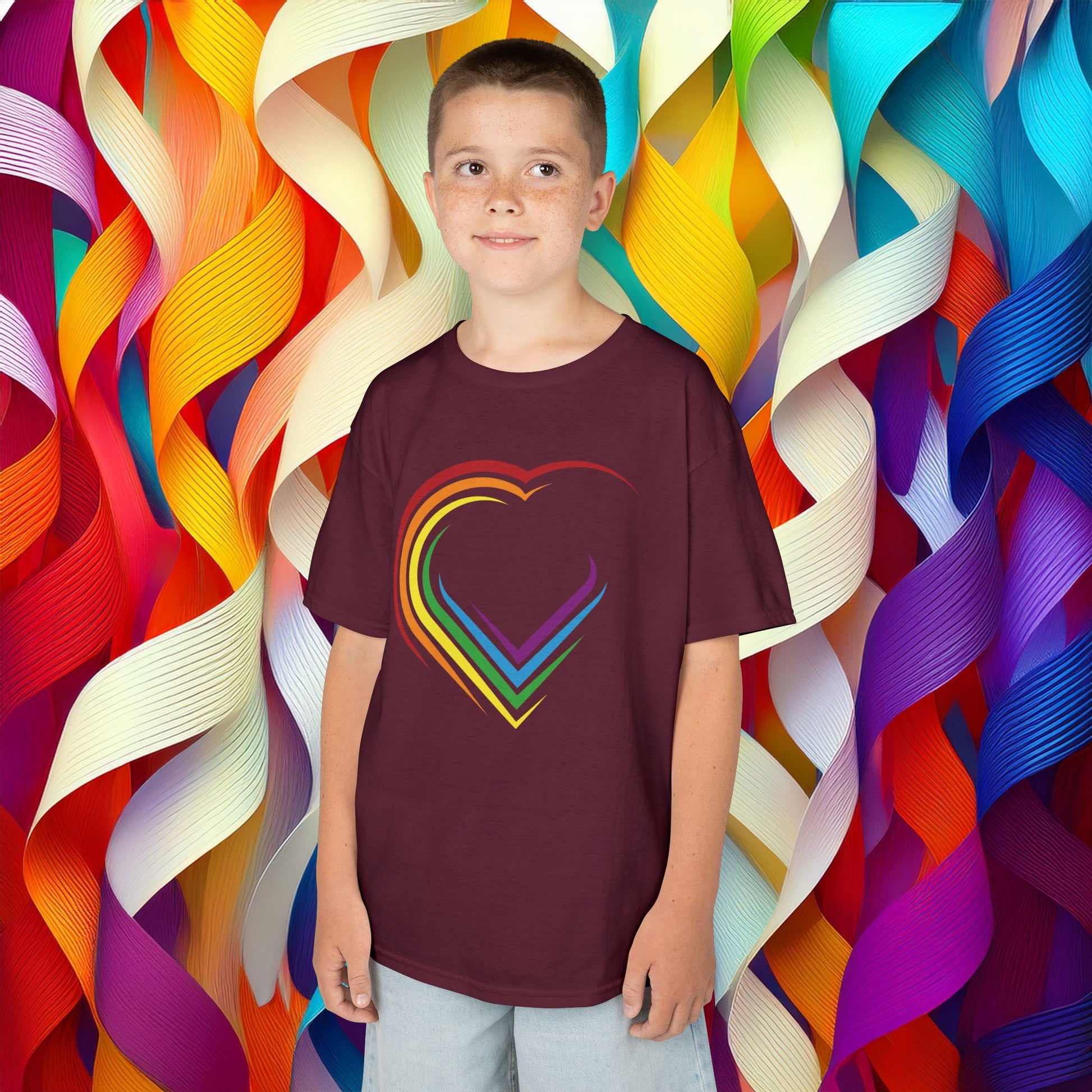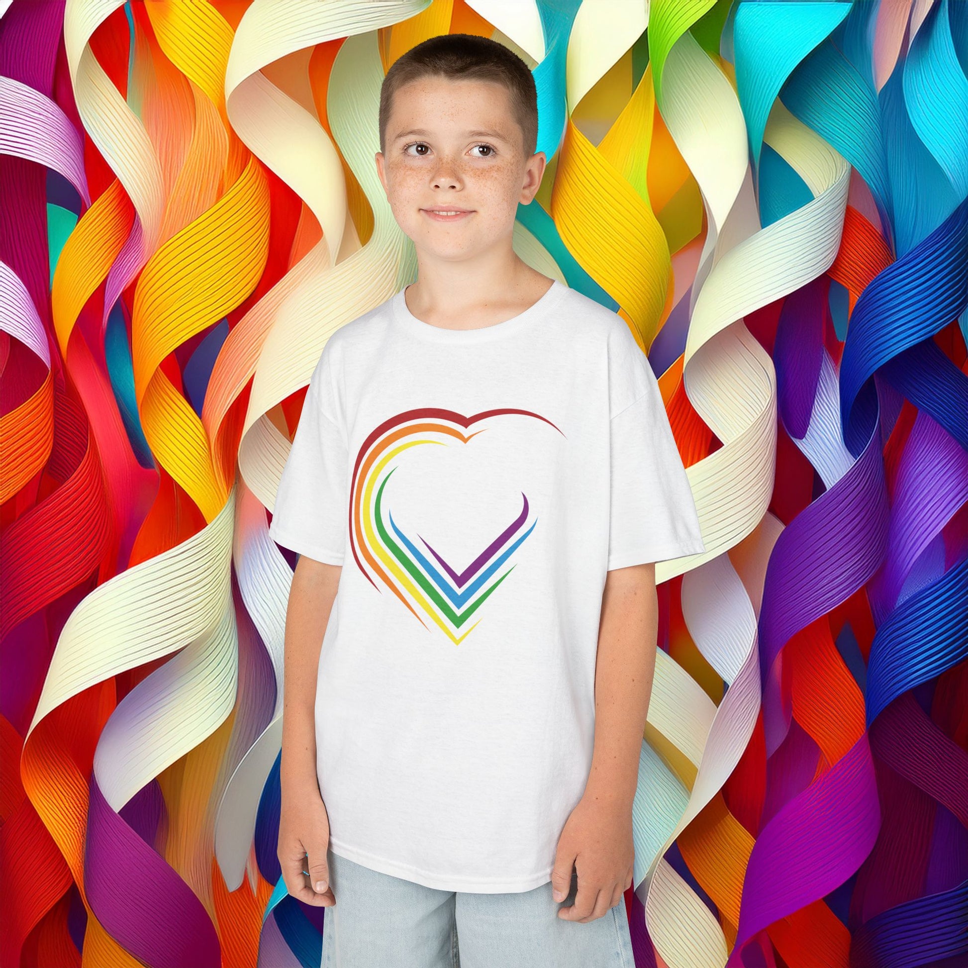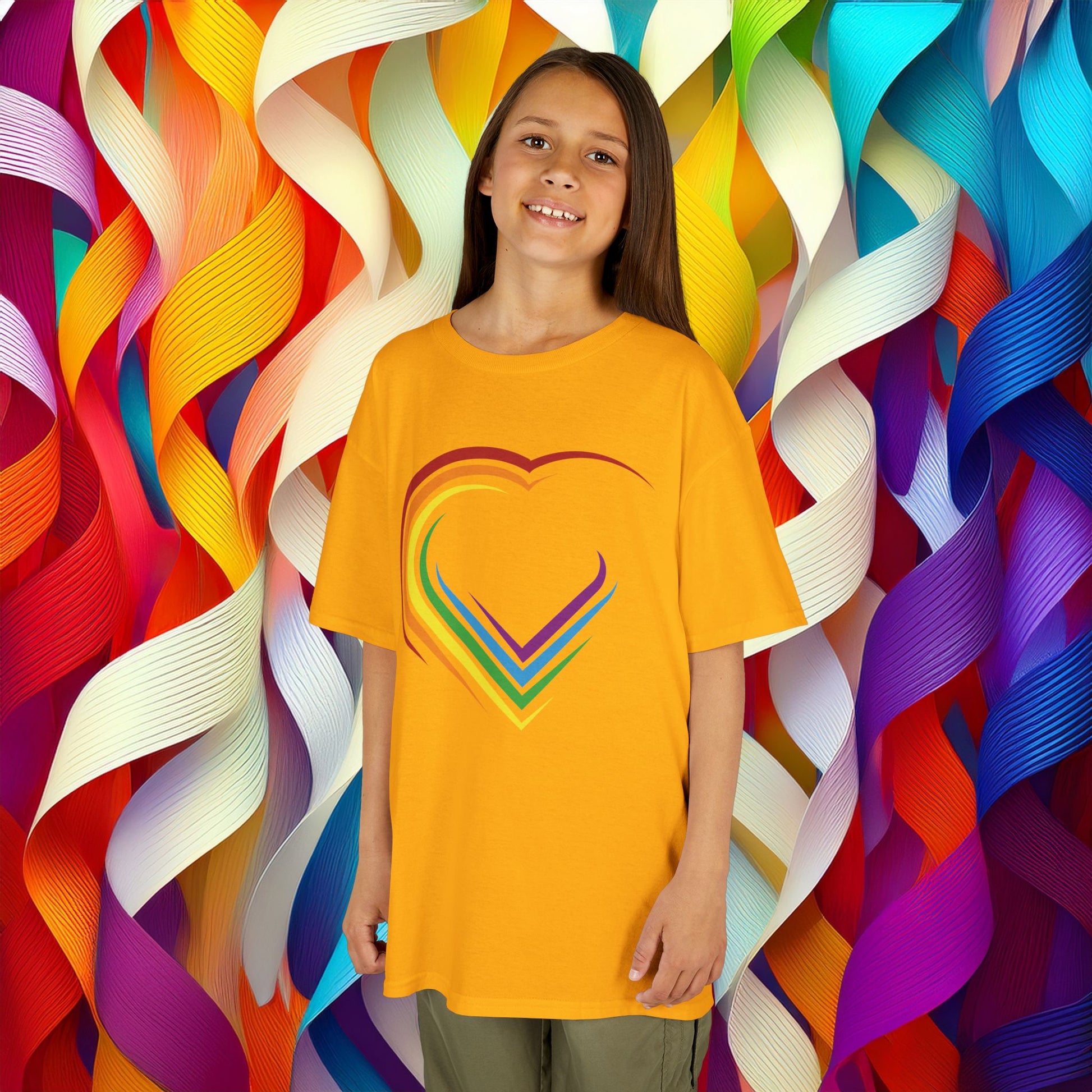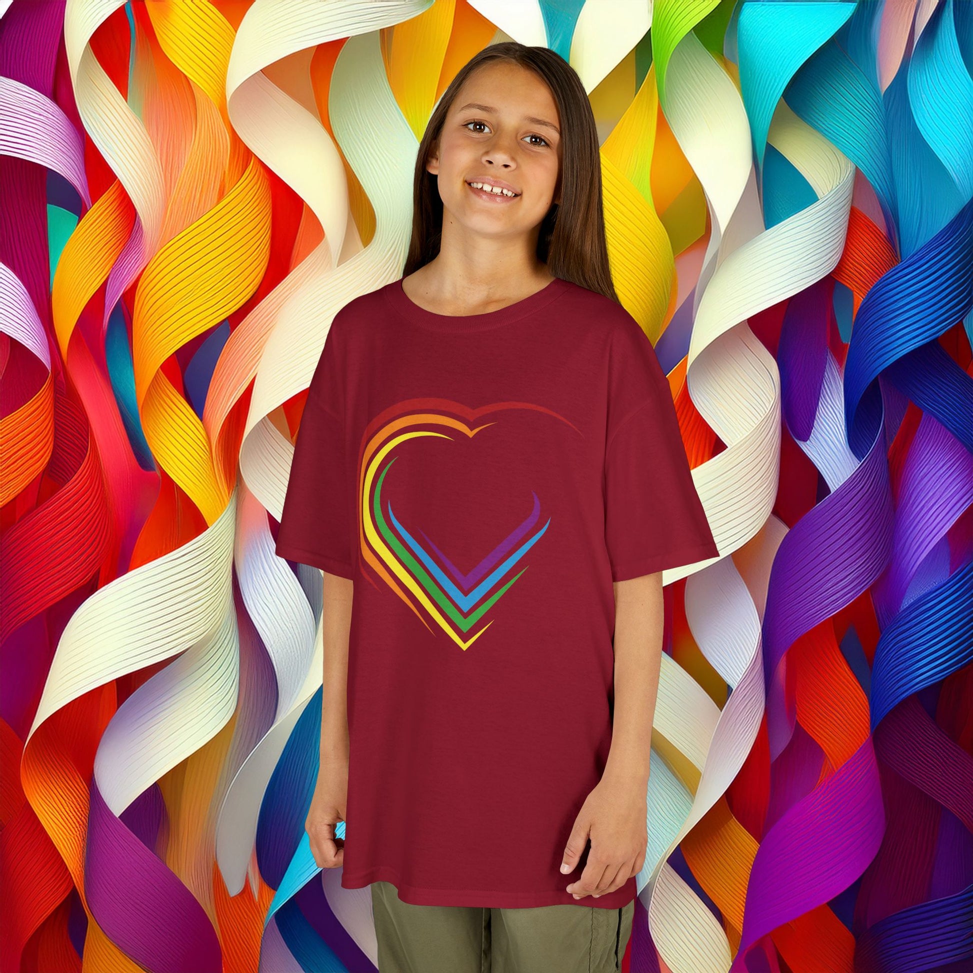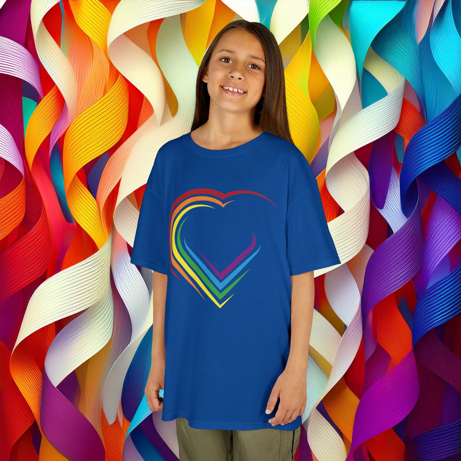 Introducing our vibrant rainbow heart design Kids Heavy Cotton™ Tee, designed to bring a pop of color and joy to your child’s wardrobe. This playful t-shirt features a cheerful, rainbow heart design, perfect for celebrating love, diversity, and creativity! Made from soft, ethically sourced US cotton, it offers a cozy fit for day-to-day adventures, whether in the playground or at family gatherings. Ideal for little ones aged 4 to 12, this tee is perfect for Valentine's Day, social events, or just because! Its classic design pairs well with shorts or jeans, making it a versatile addition to any outfit. Brighten your child’s day with this tee, showcasing both style and comfort, and let them express their colorful personality with every wear.
