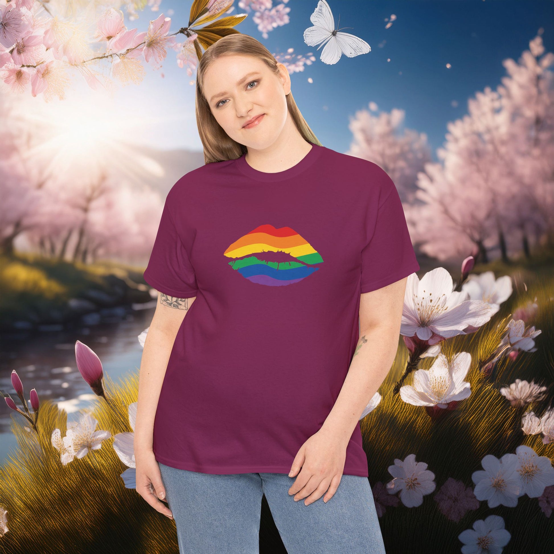 Celebrate love and individuality with this stylish Pride themed kiss Unisex Heavy Cotton Tee. Designed for comfort and versatility, this tee radiates positivity and confidence, making it the perfect addition to any wardrobe. Its vibrant design pairs beautifully with casual and semi-formal outfits, making it great for any occasion, from pride parades and festivals to everyday wear. This tee is ideal for anyone wanting to express their true self and embrace inclusivity. Perfect for gifts during Pride Month, birthdays, or as a thoughtful gesture during celebrations of love and acceptance.
