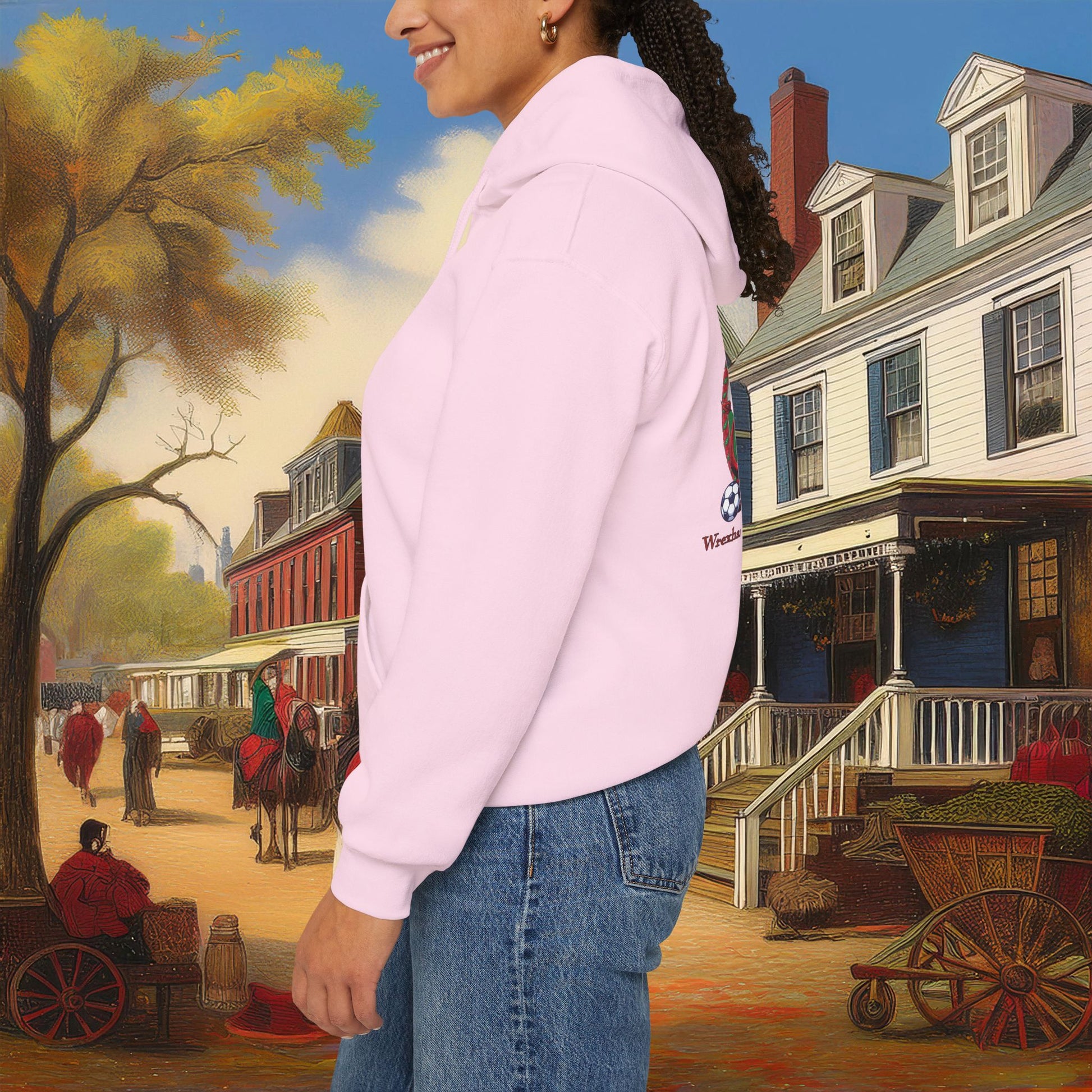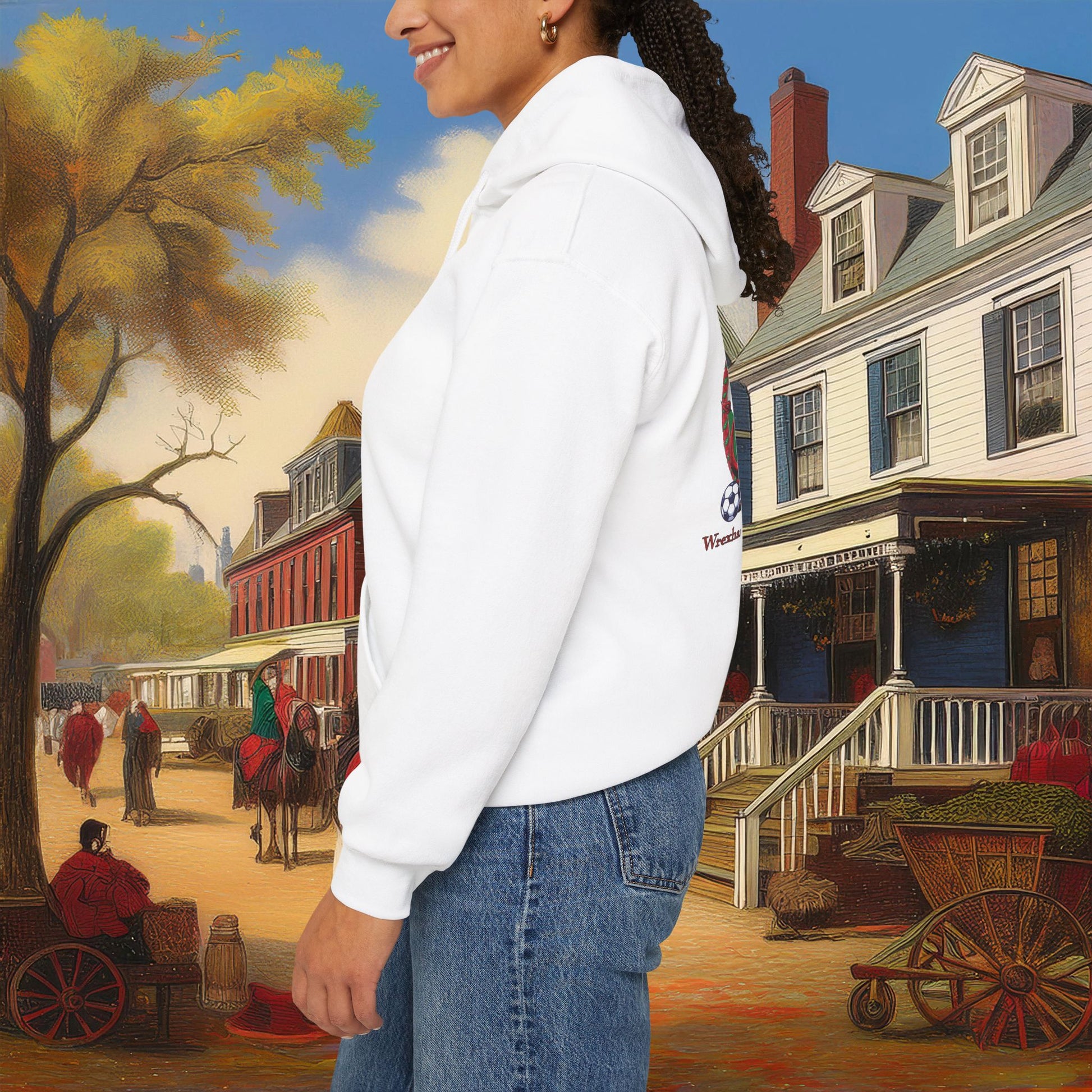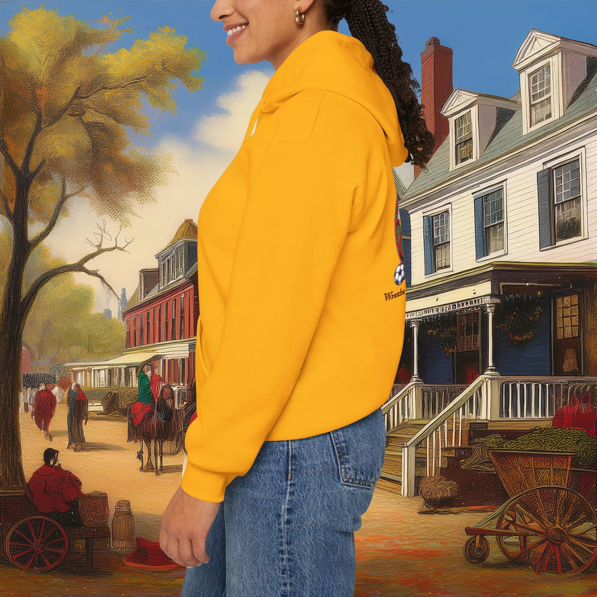 This Wrexham AFC Virginia supporters group heavy blend hooded sweatshirt is relaxation itself. Made with a thick blend of cotton and polyester, it feels plush, soft and warm, a perfect choice for any cold day. In the front, the spacious kangaroo pocket adds daily practicality while the hood's drawstring is the same color as the base sweater for extra style points.