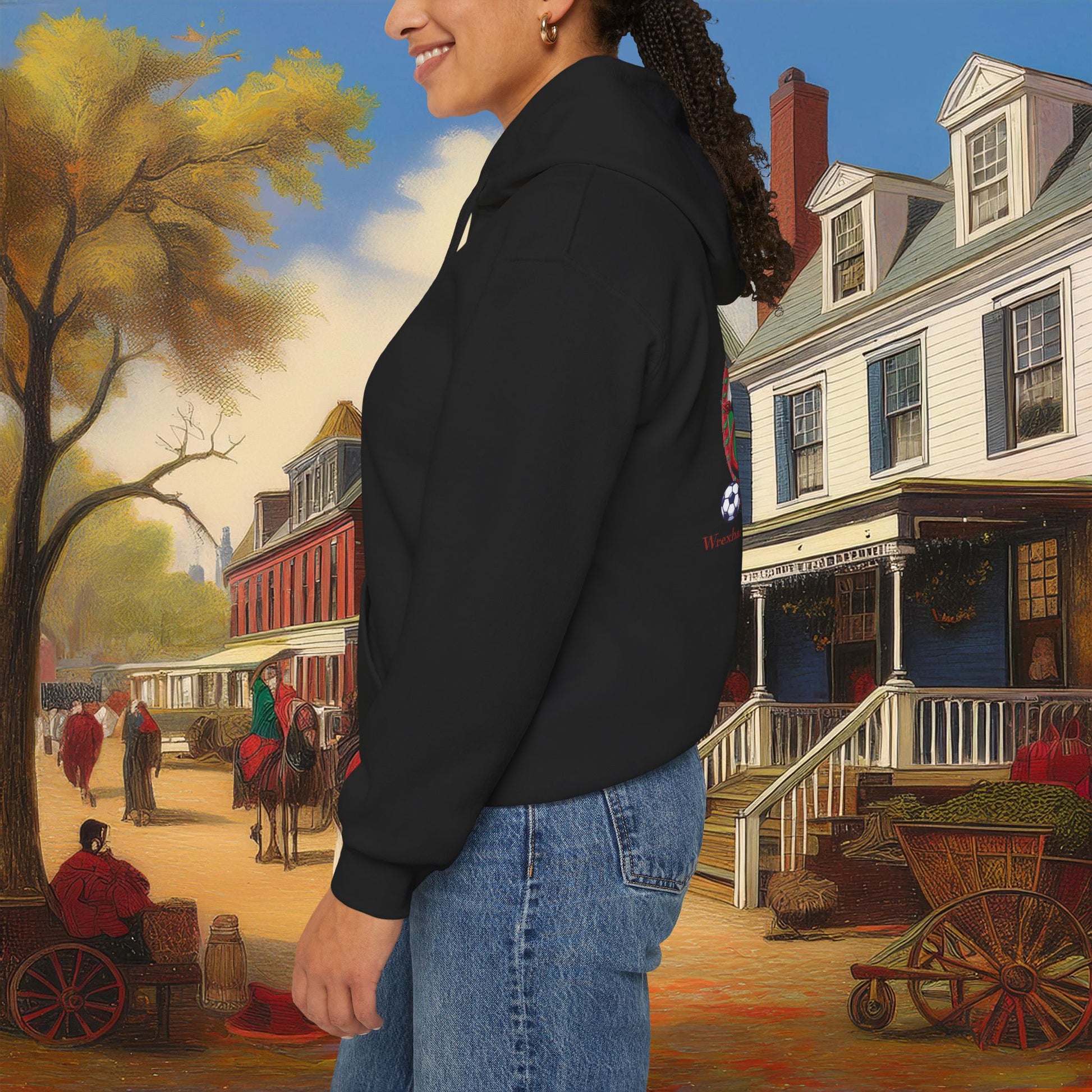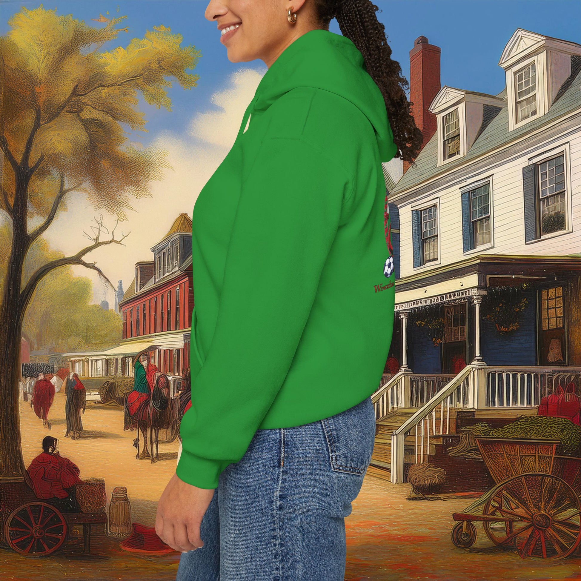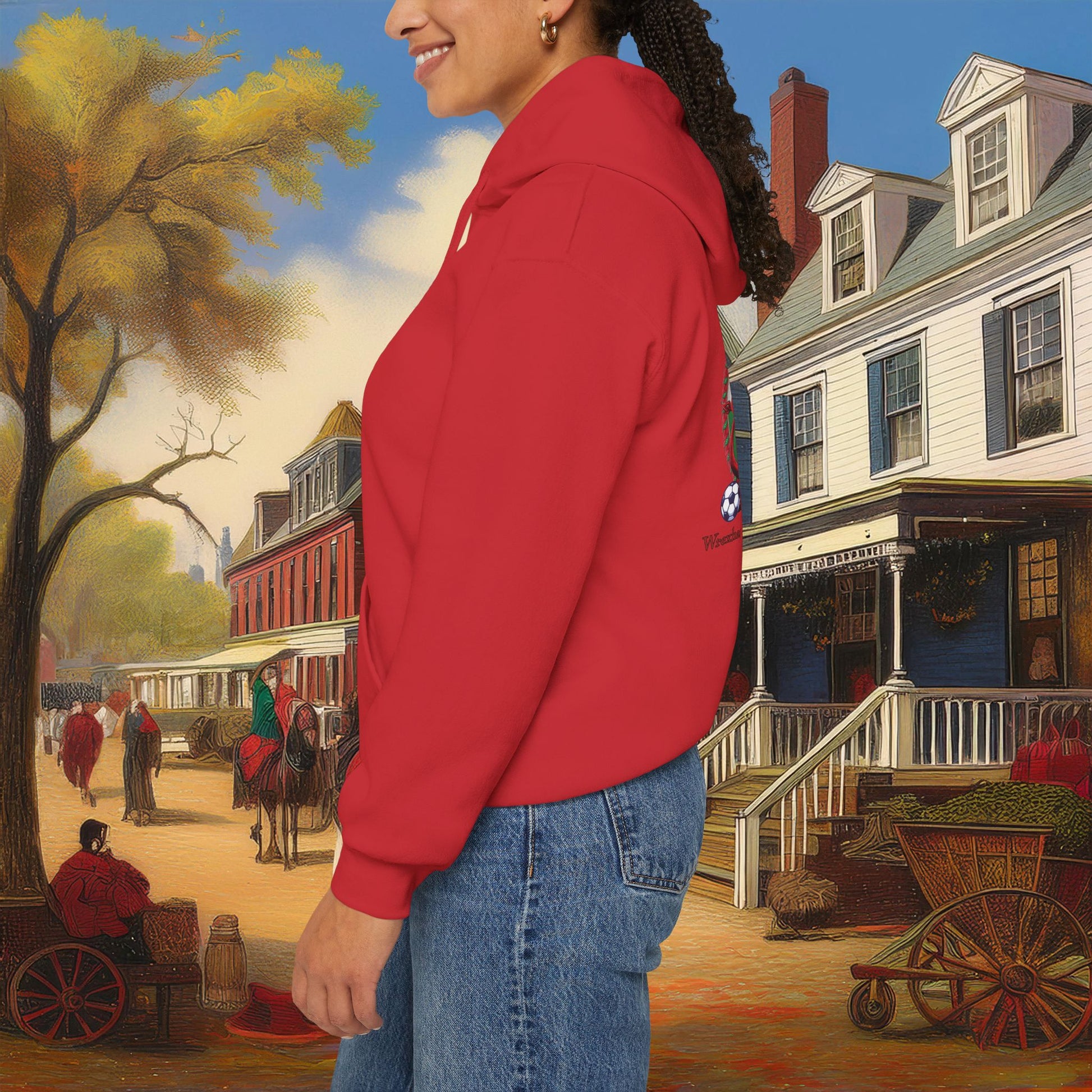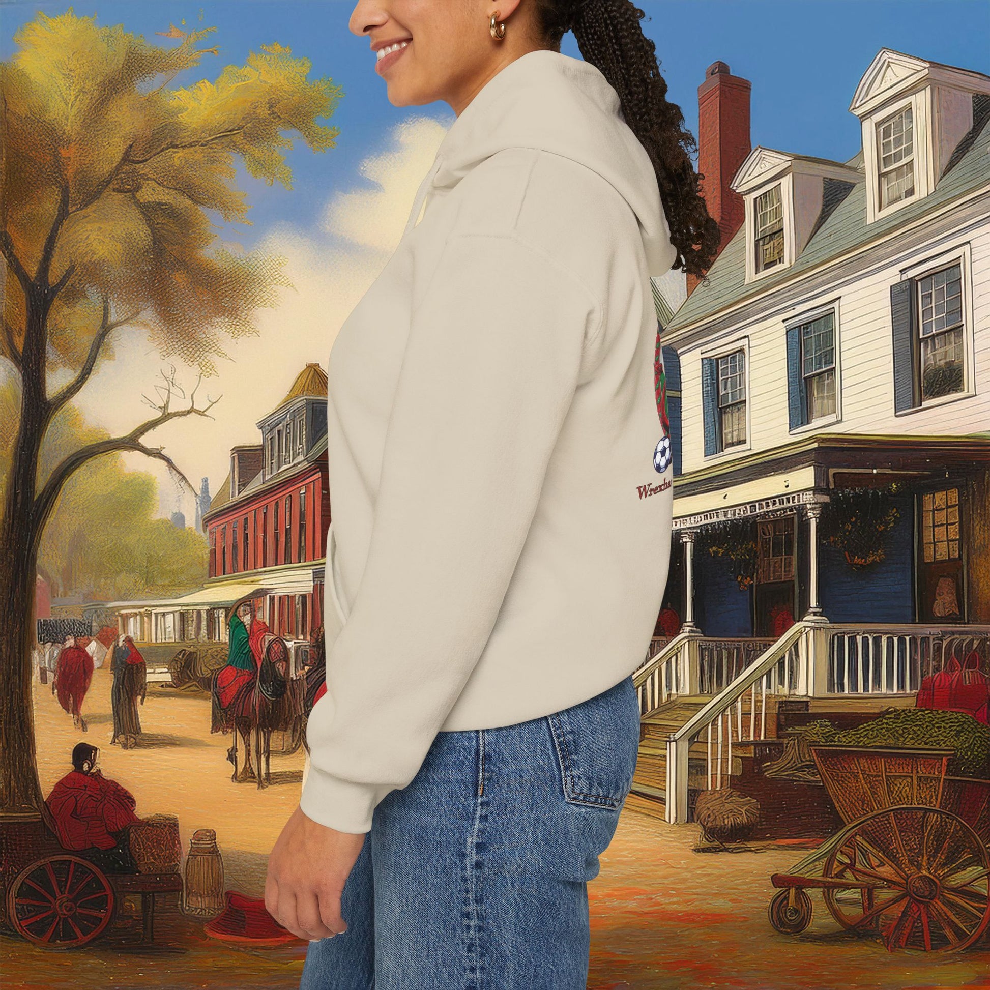 This Wrexham AFC Virginia supporters group heavy blend hooded sweatshirt is relaxation itself. Made with a thick blend of cotton and polyester, it feels plush, soft and warm, a perfect choice for any cold day. In the front, the spacious kangaroo pocket adds daily practicality while the hood's drawstring is the same color as the base sweater for extra style points.