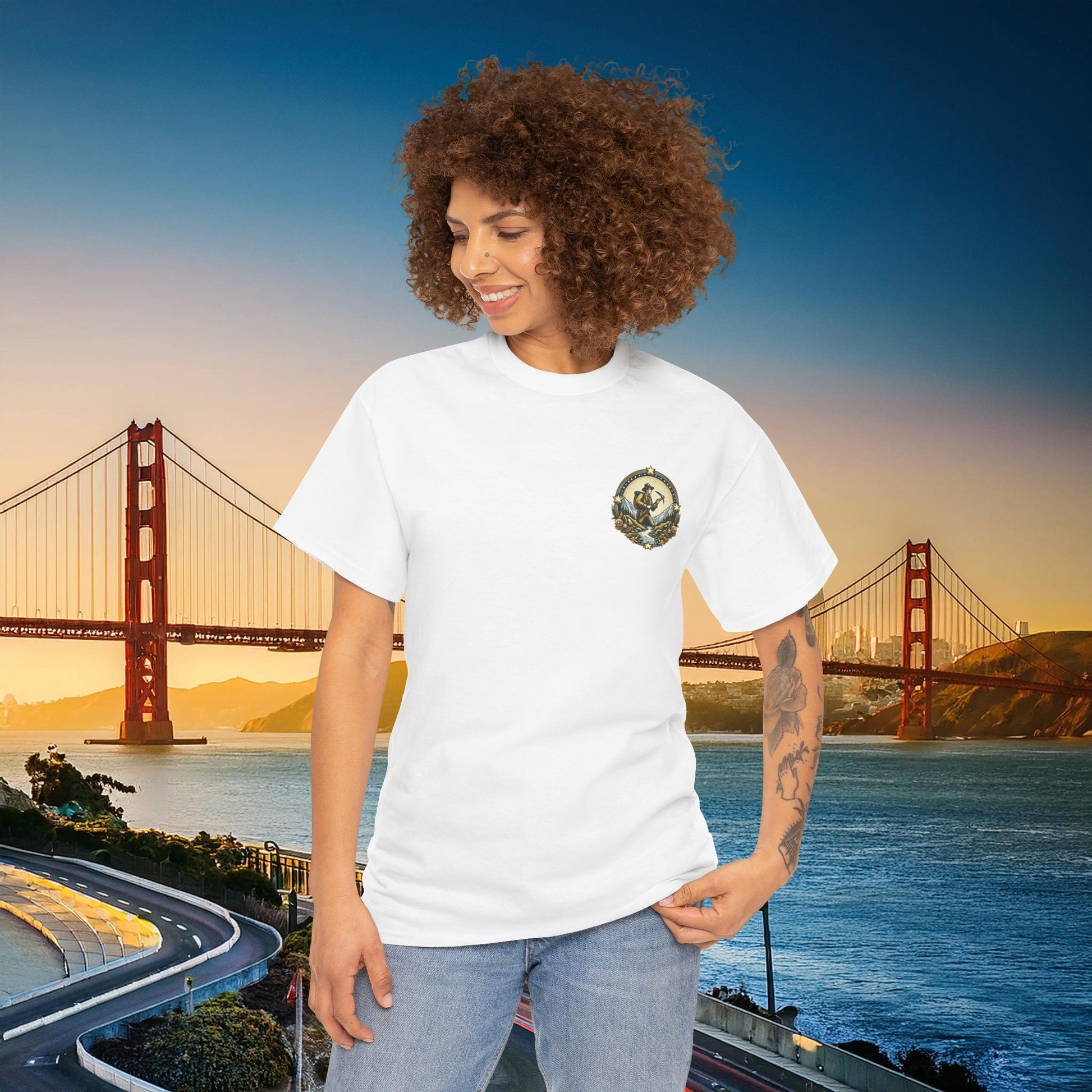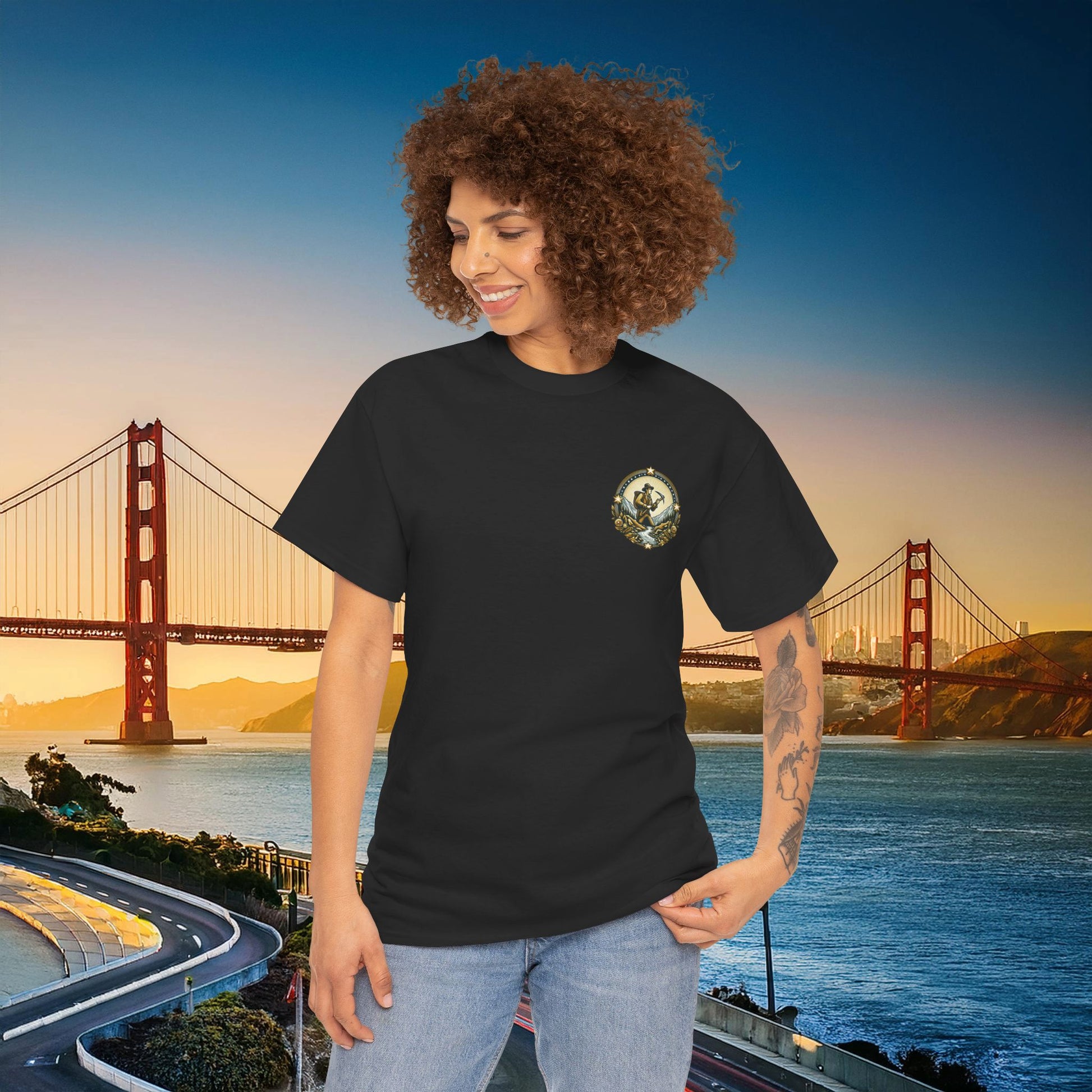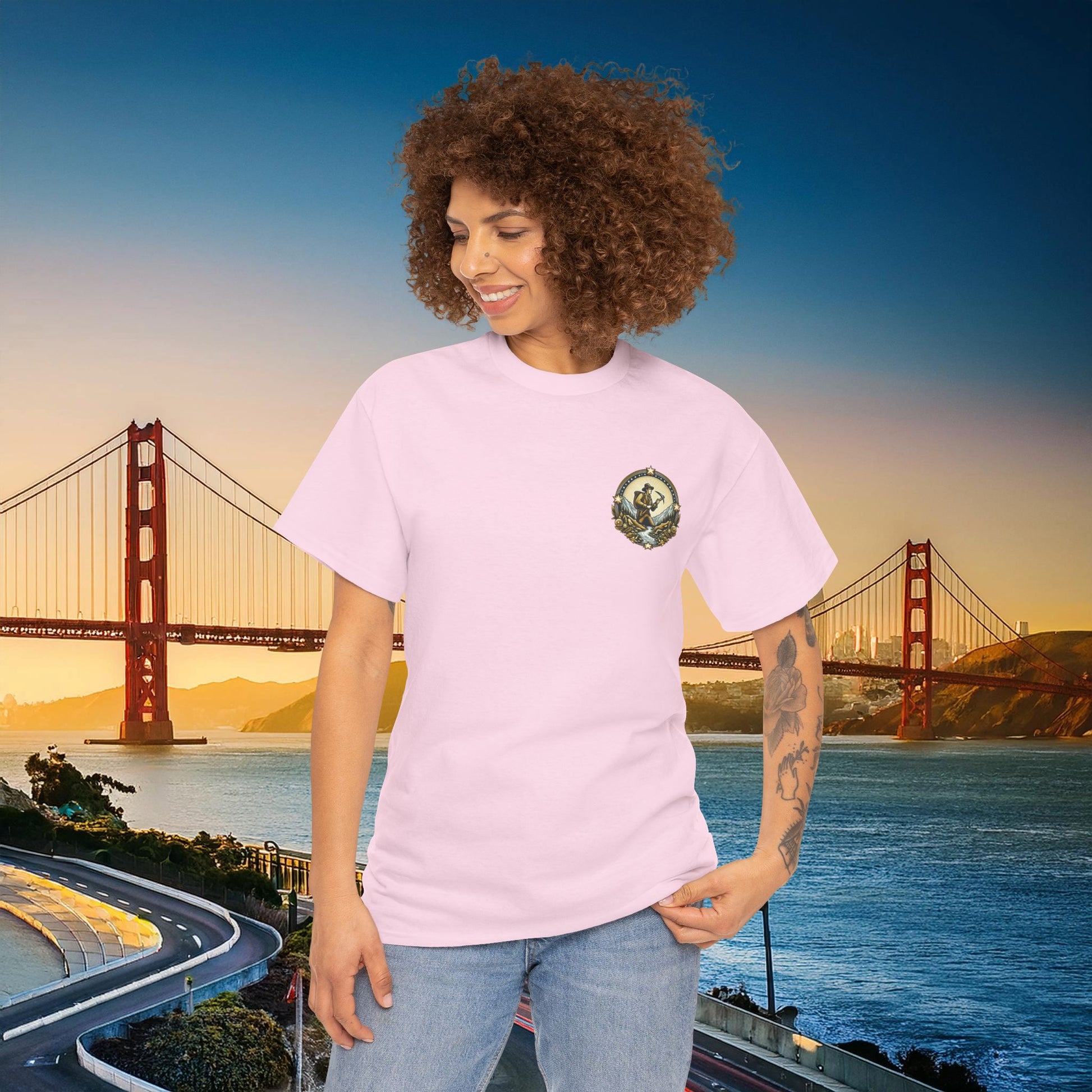 This San Francisco 49ers themed heavy cotton tee is the basic staple of any wardrobe. It is the foundation upon which casual fashion grows. The specially spun fibers provide a smooth surface for premium printing vividity and sharpness. No side seams mean there are no itchy interruptions under the arms. The shoulders have tape for improved durability.