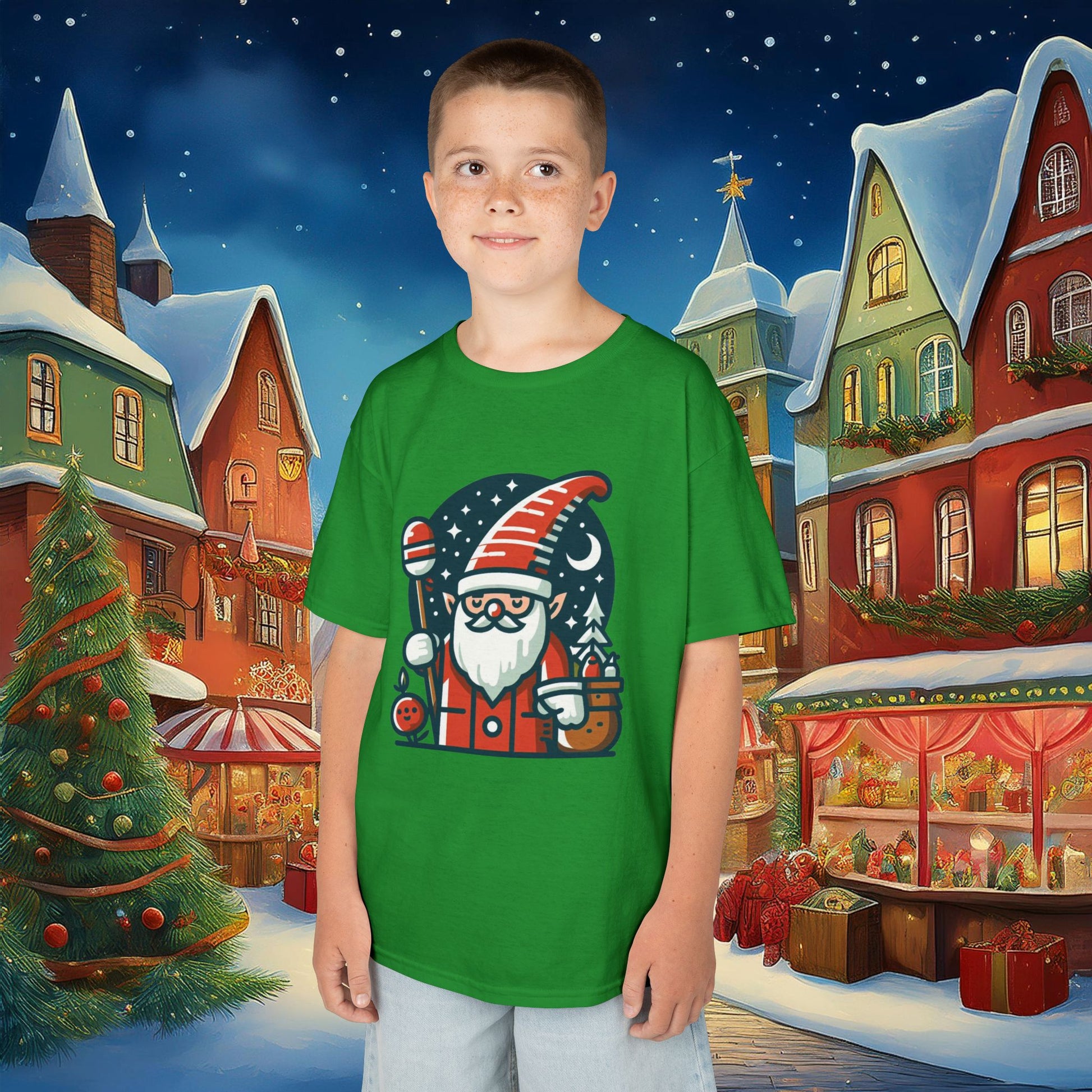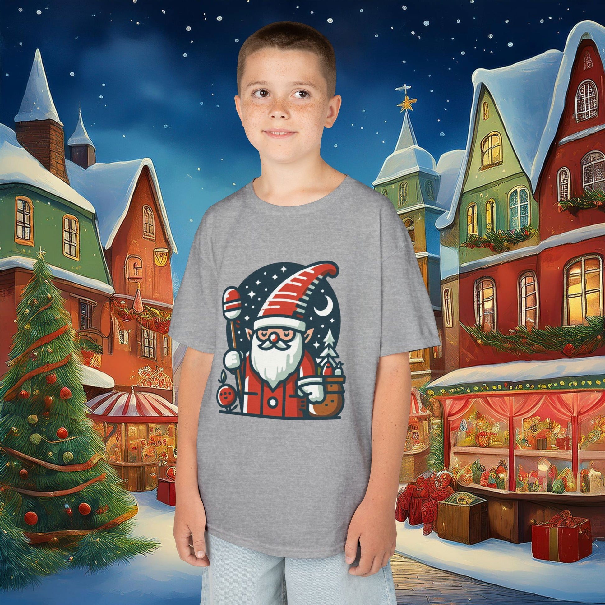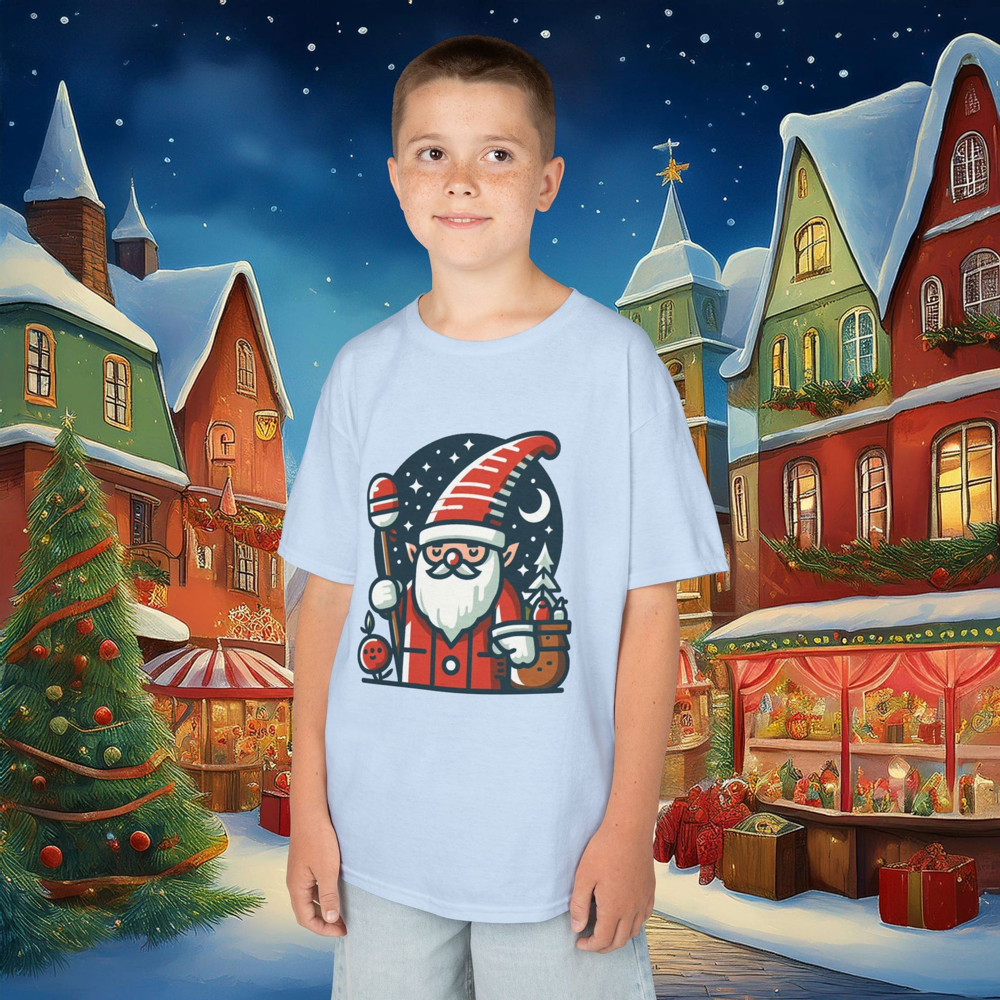 This Christmas themed kids heavy cotton tee is perfect for everyday use. The fabric is 100% cotton for solid colors. Polyester is included for heather-color variants. The shoulders have twill tape for improved durability. The collar is curl resistant due to ribbed knitting. There are no seams along the sides.