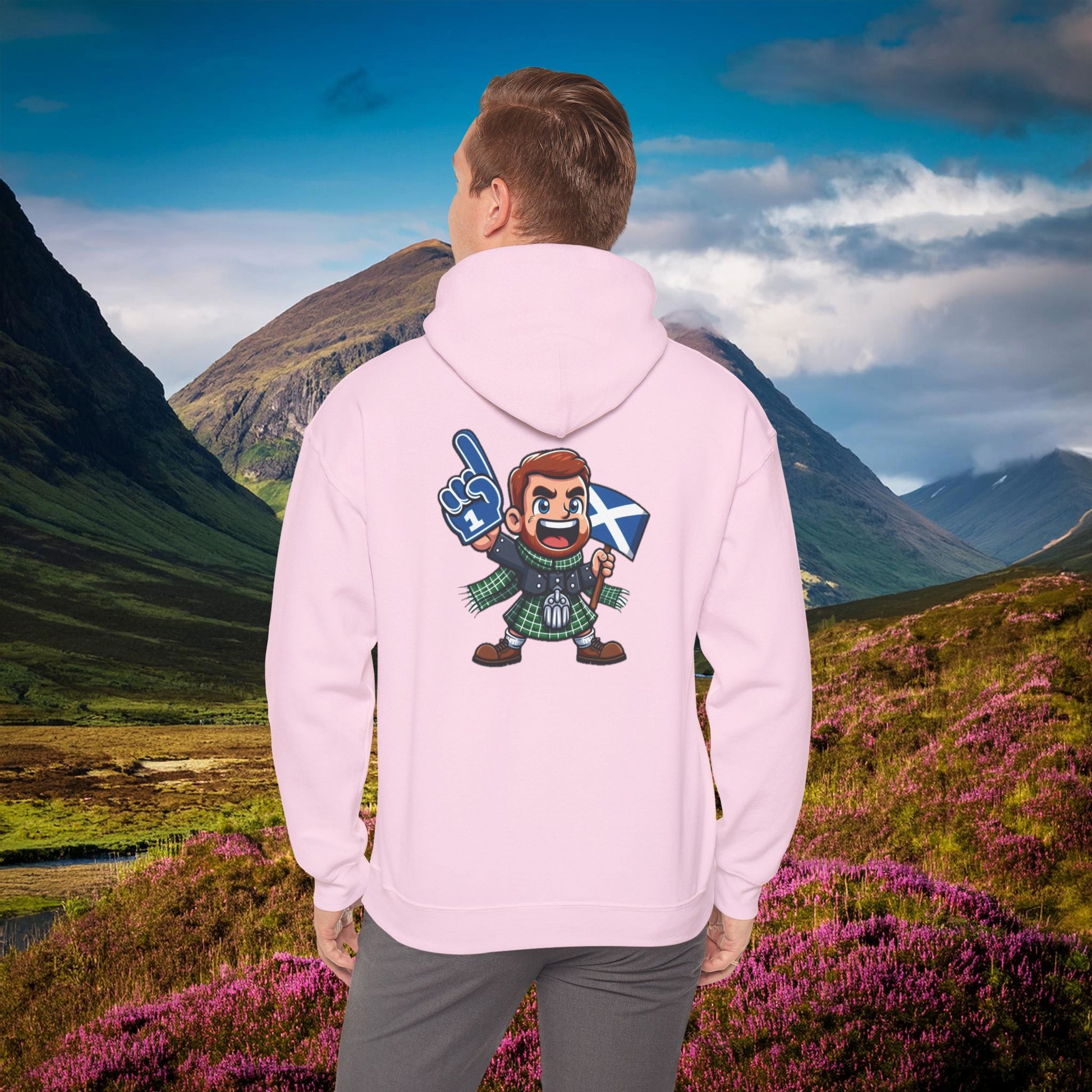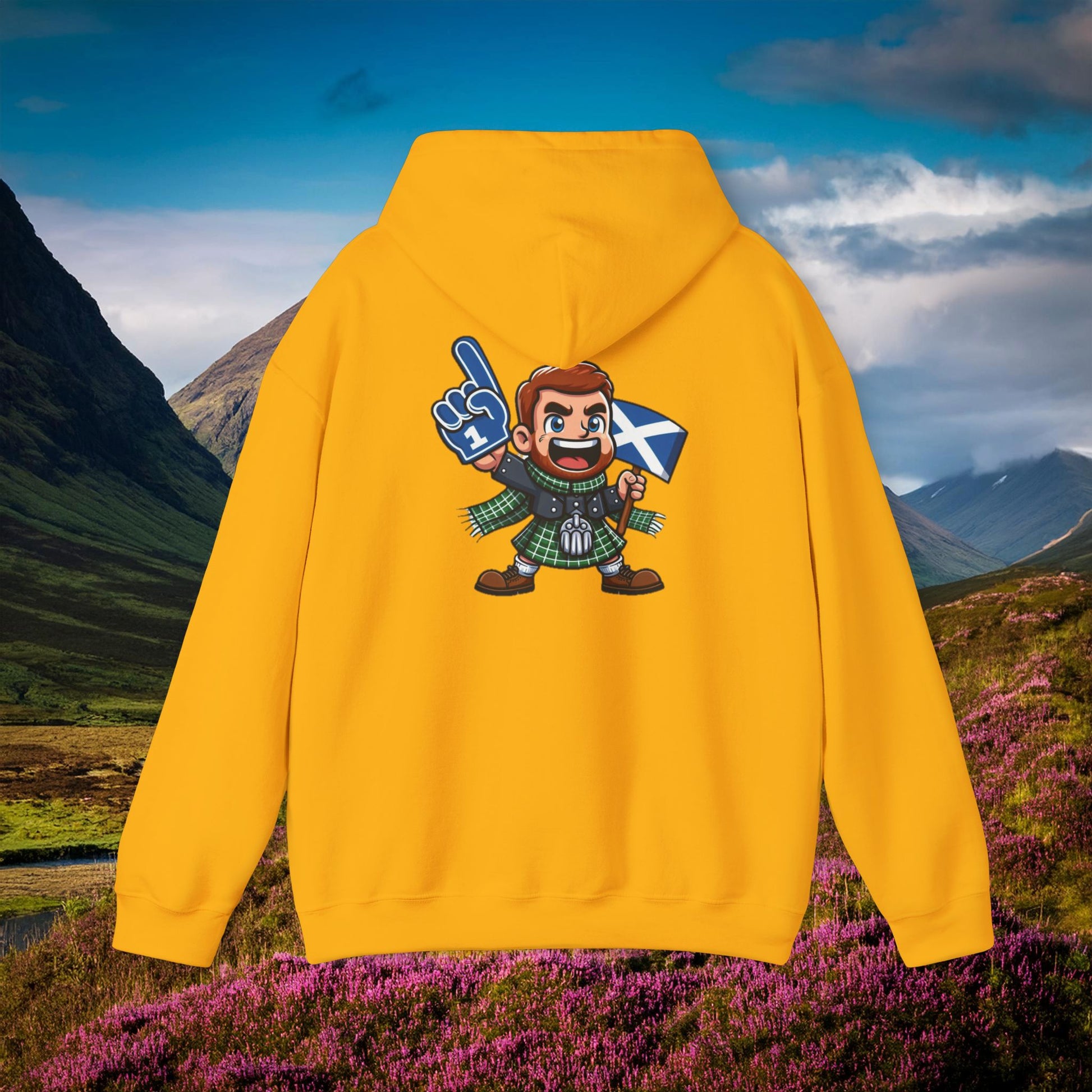 This Scottish themed heavy blend hooded sweatshirt is relaxation itself. Made with a thick blend of cotton and polyester, it feels plush, soft and warm, a perfect choice for any cold day. In the front, the spacious kangaroo pocket adds daily practicality while the hood's drawstring is the same color as the base sweater for extra style points.
