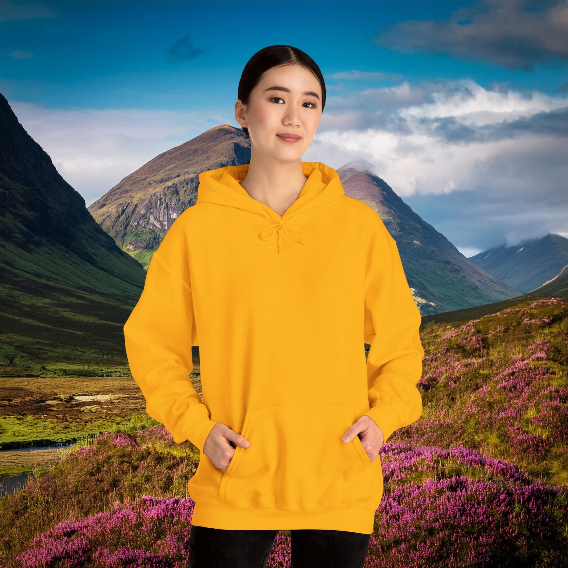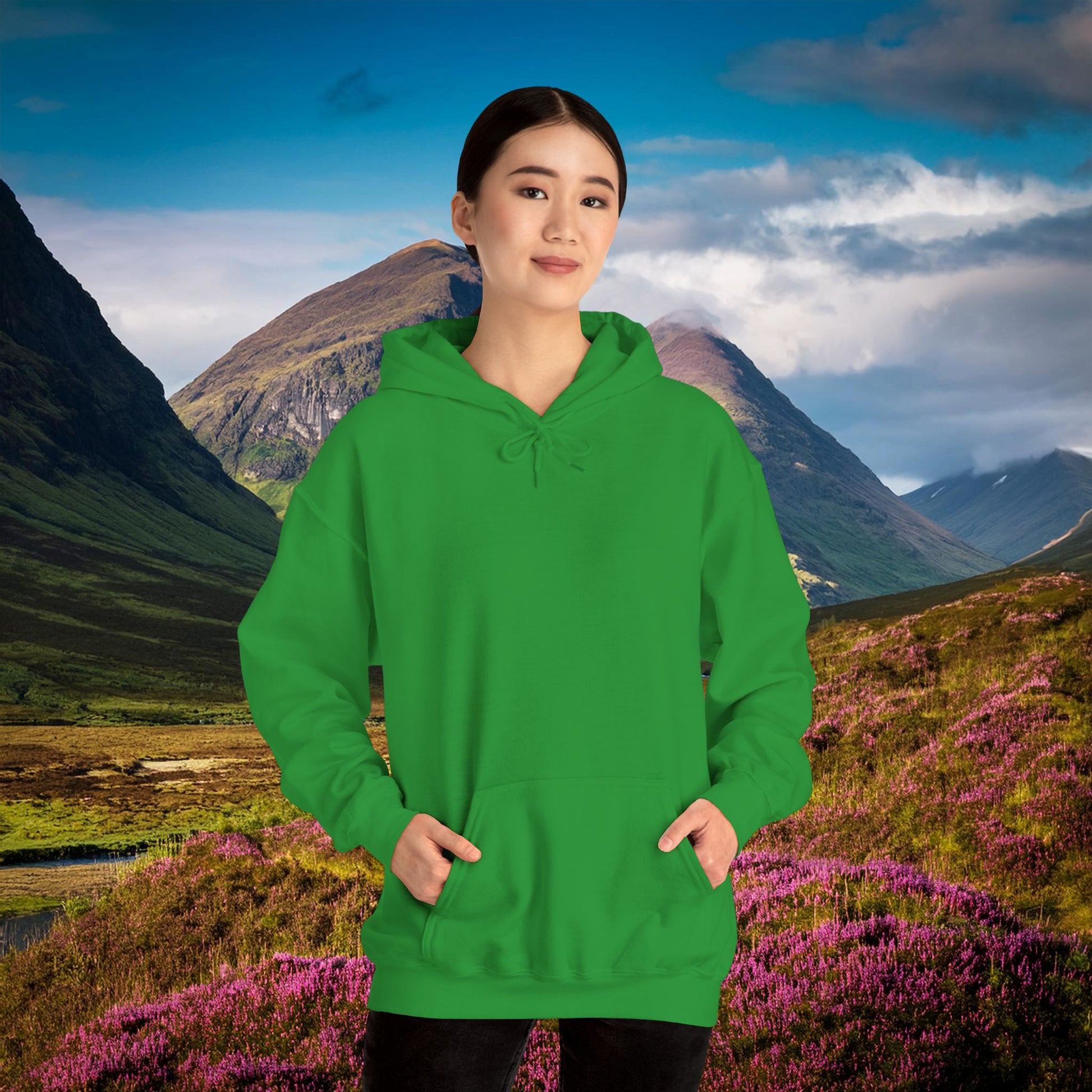 This Scottish Punk theme heavy blend hooded sweatshirt is relaxation itself. Made with a thick blend of cotton and polyester, it feels plush, soft and warm, a perfect choice for any cold day. In the front, the spacious kangaroo pocket adds daily practicality while the hood's drawstring is the same color as the base sweater for extra style points.