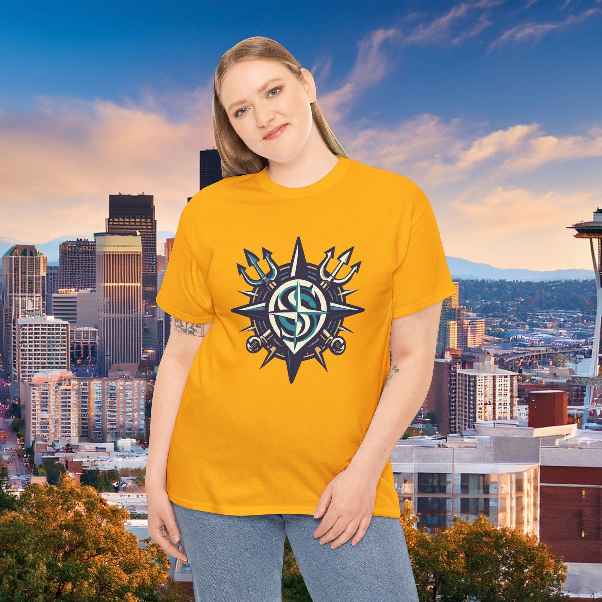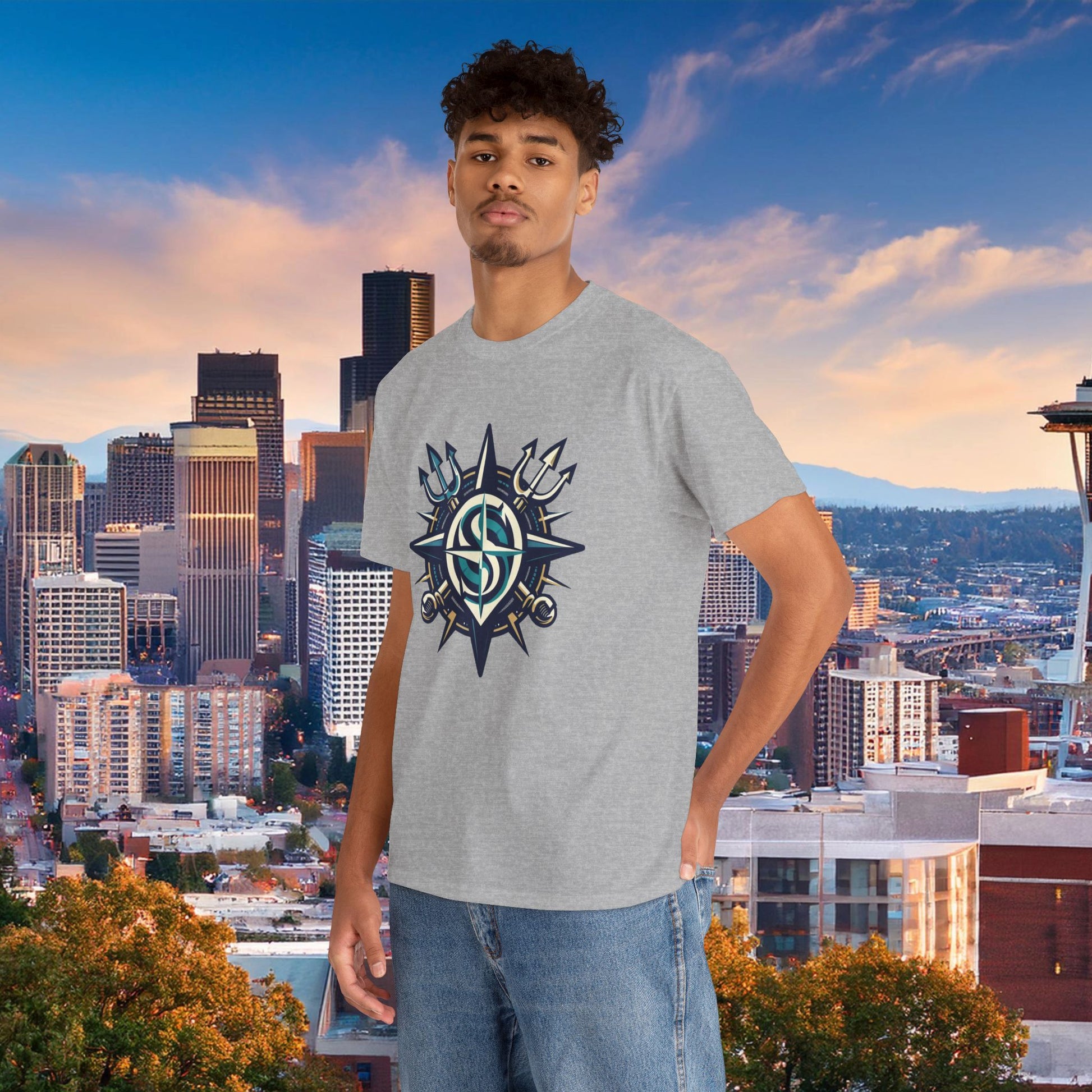 This Seattle Mariners themed heavy cotton tee is the basic staple of any wardrobe. It is the foundation upon which casual fashion grows. The specially spun fibers provide a smooth surface for premium printing vividity and sharpness. No side seams mean there are no itchy interruptions under the arms. The shoulders have tape for improved durability.