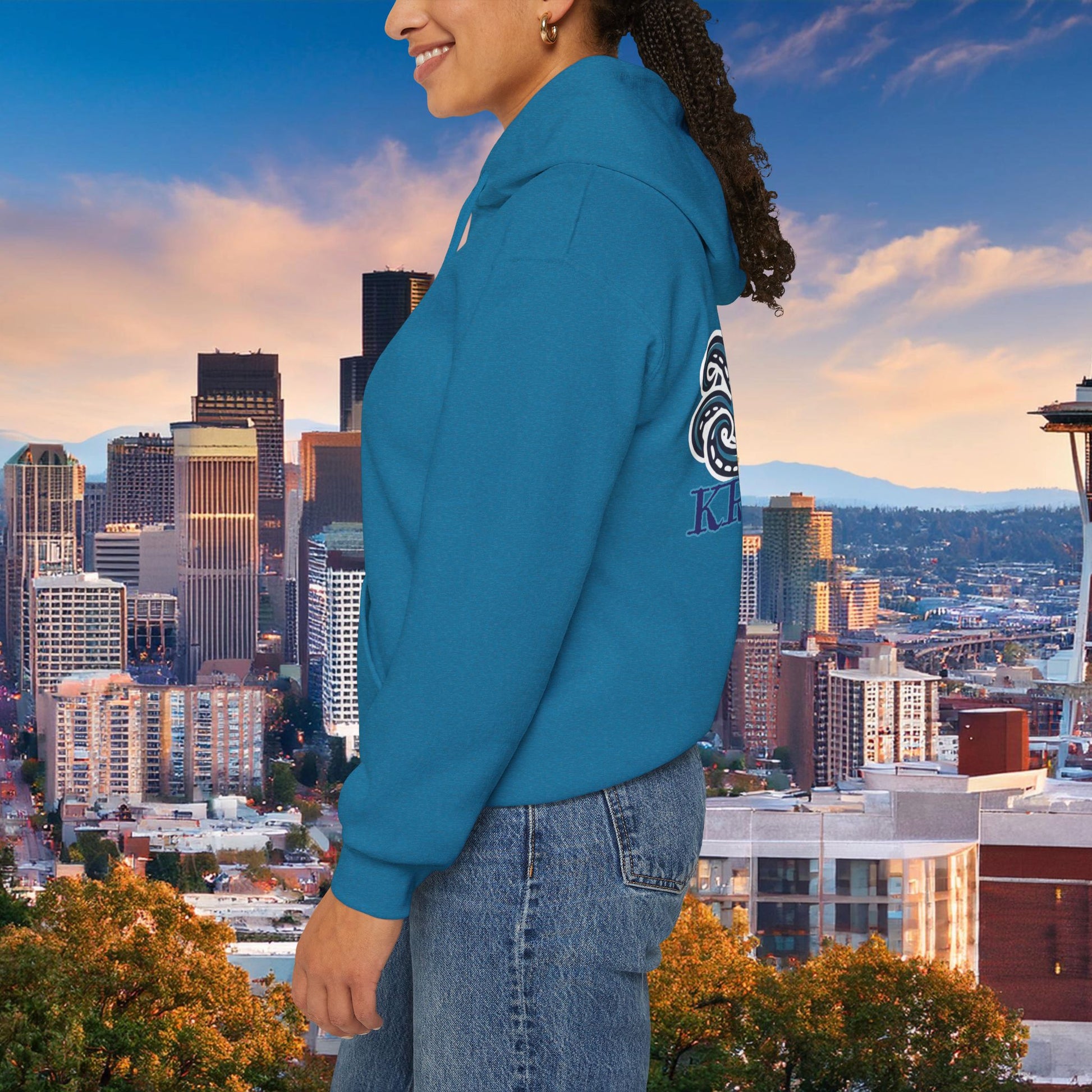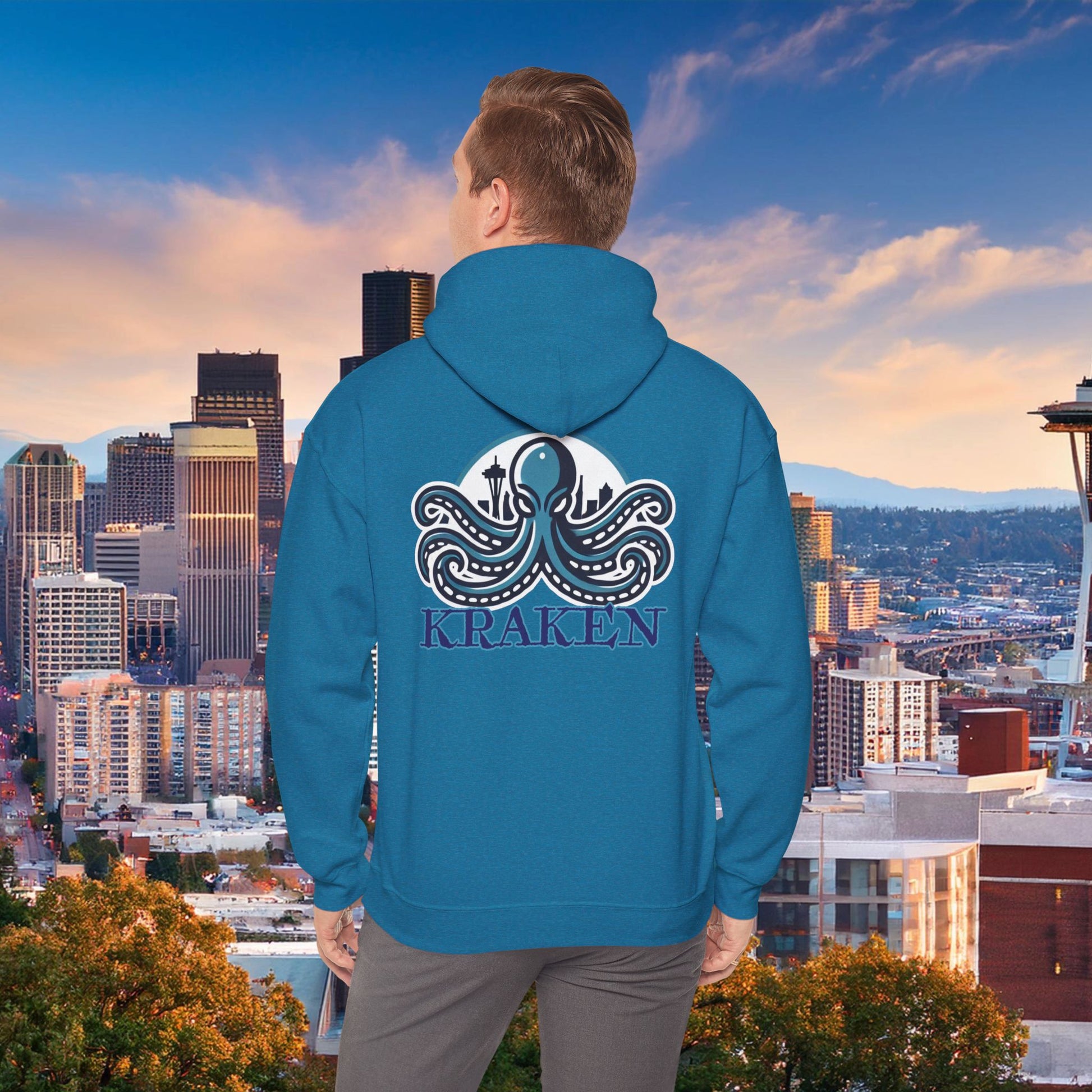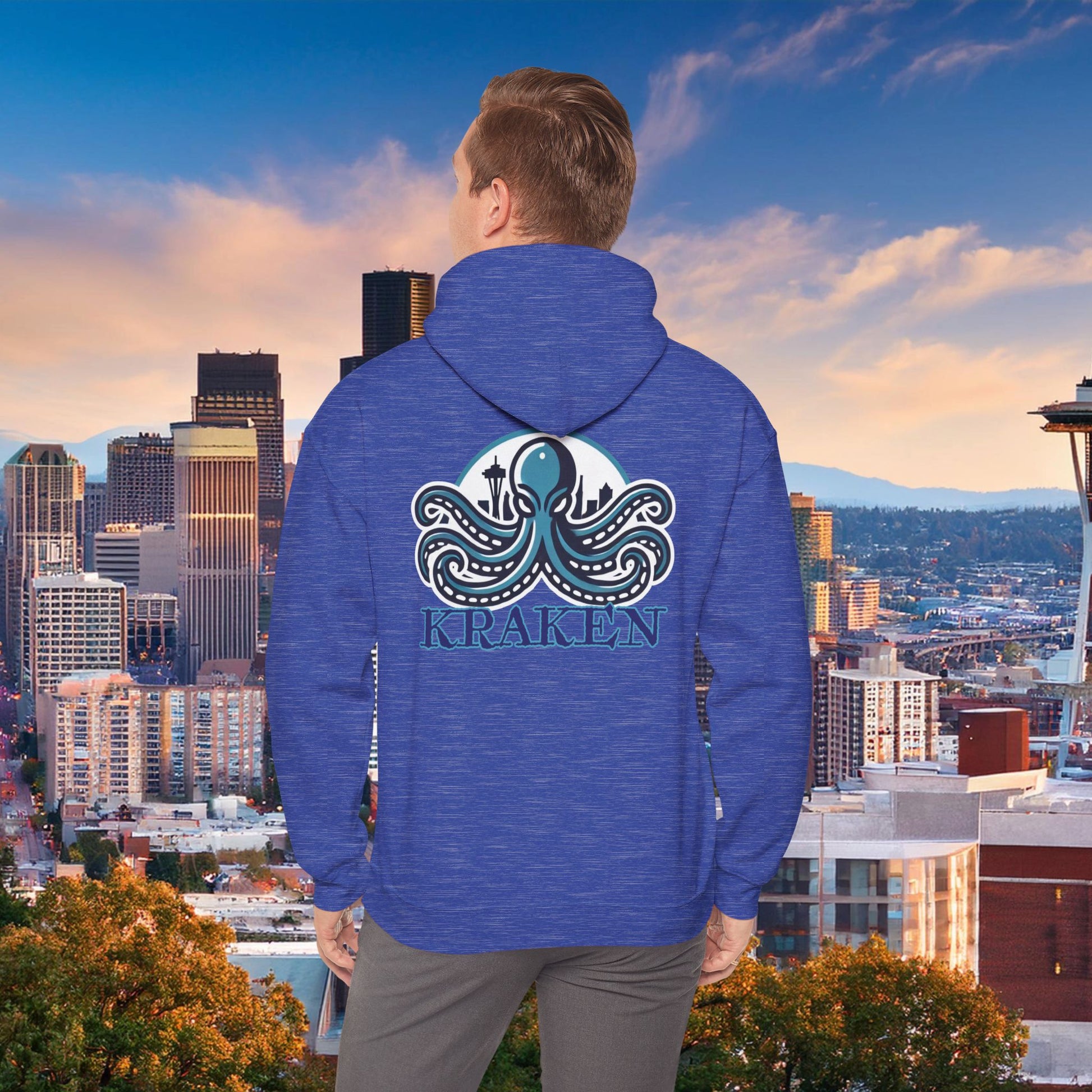 This Seattle Kraken themed heavy blend hooded sweatshirt is relaxation itself. Made with a thick blend of cotton and polyester, it feels plush, soft and warm, a perfect choice for any cold day. In the front, the spacious kangaroo pocket adds daily practicality while the hood's drawstring is the same color as the base sweater for extra style points.