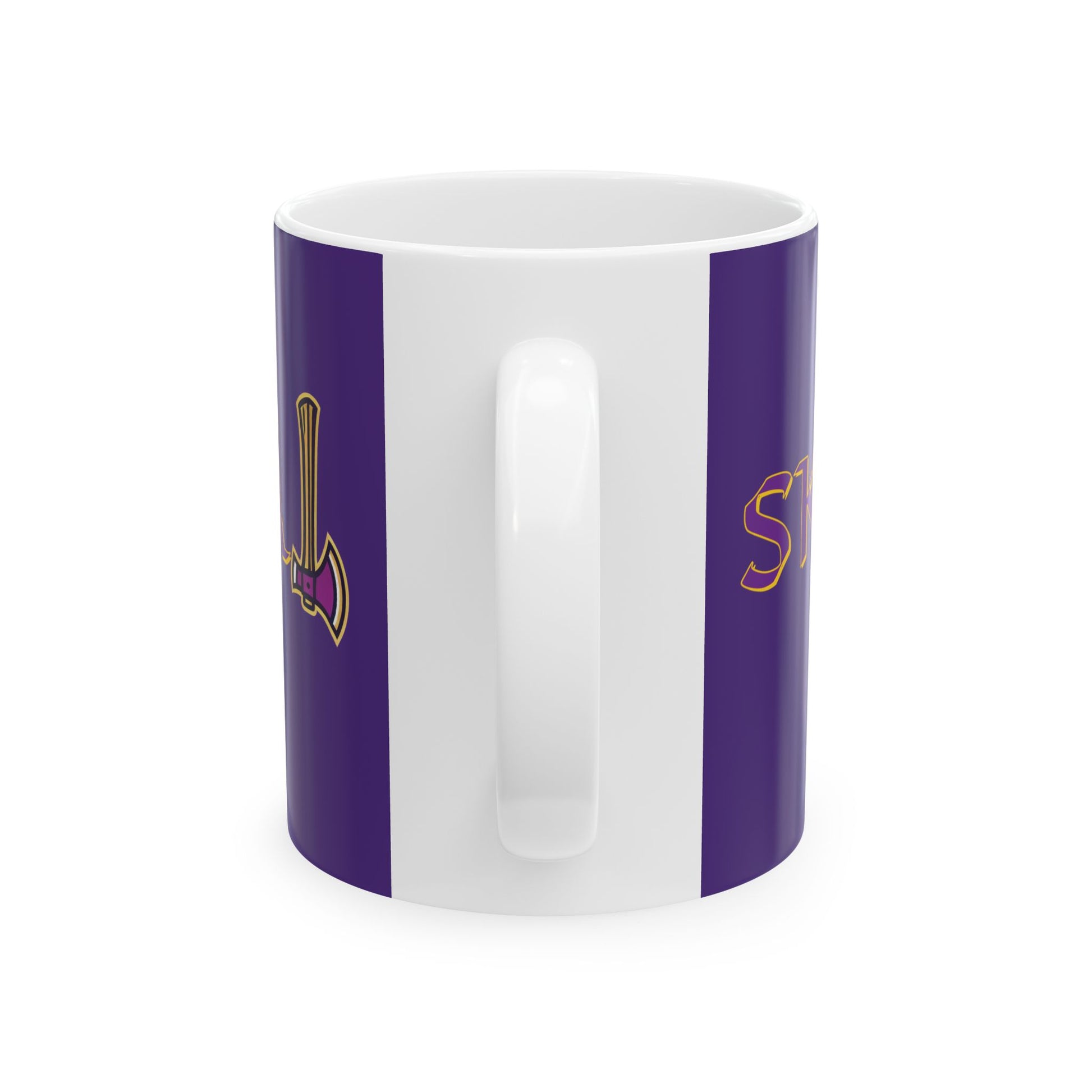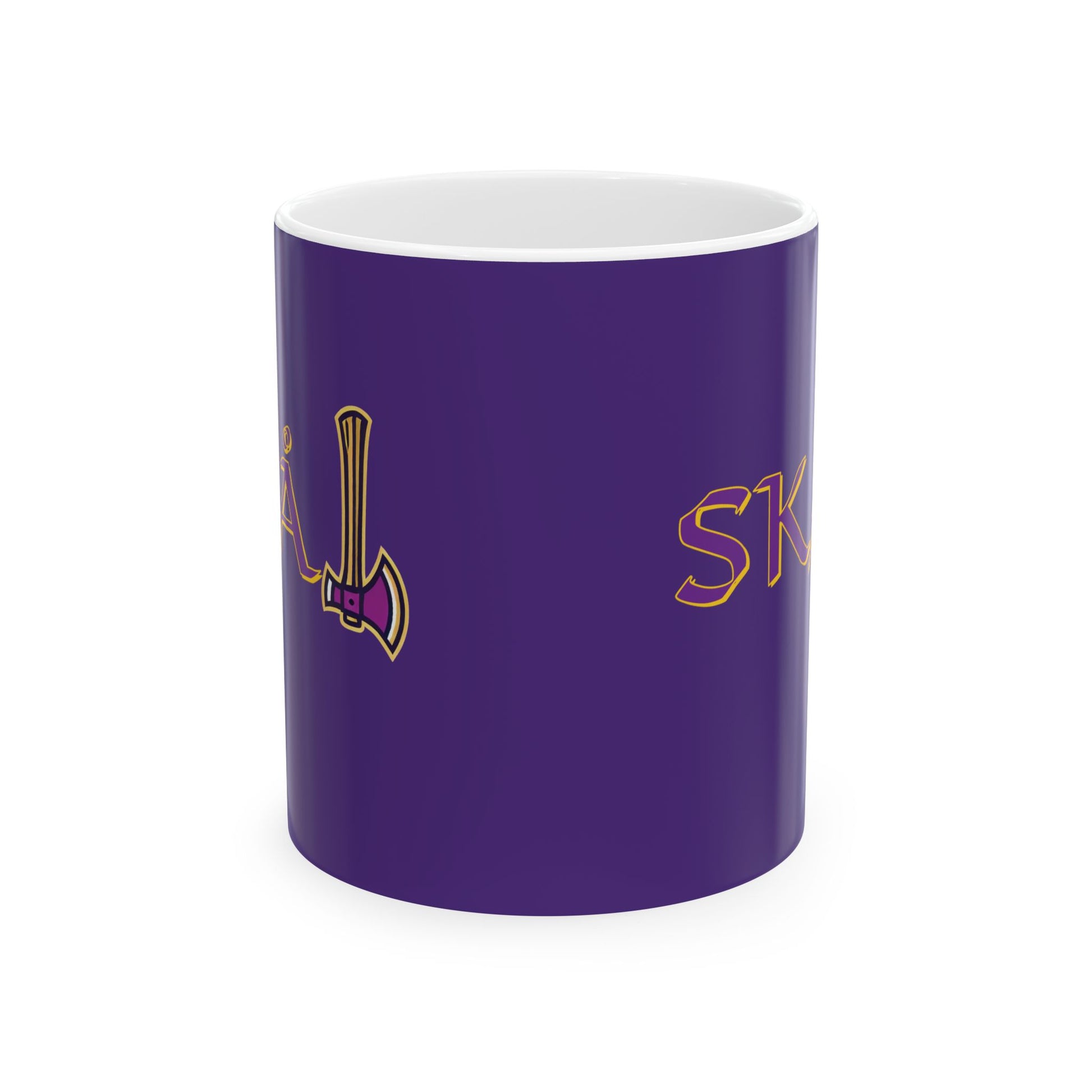 This Vikings themed ceramic mug brings bold color and a confident vibe to your everyday routine. Deep purple wraps around the exterior while crisp, gold-outlined graphics peek from the sides, giving the mug a lively, slightly nostalgic edge. It feels steady in your hand, thanks to a comfortable C-handle, and the glossy finish makes the artwork pop — whether you’re sipping morning coffee, sketching at your desk, or winding down with tea. Built to stand up to daily use, it’s microwave and dishwasher safe and free from lead and BPA, so you can enjoy it worry-free.