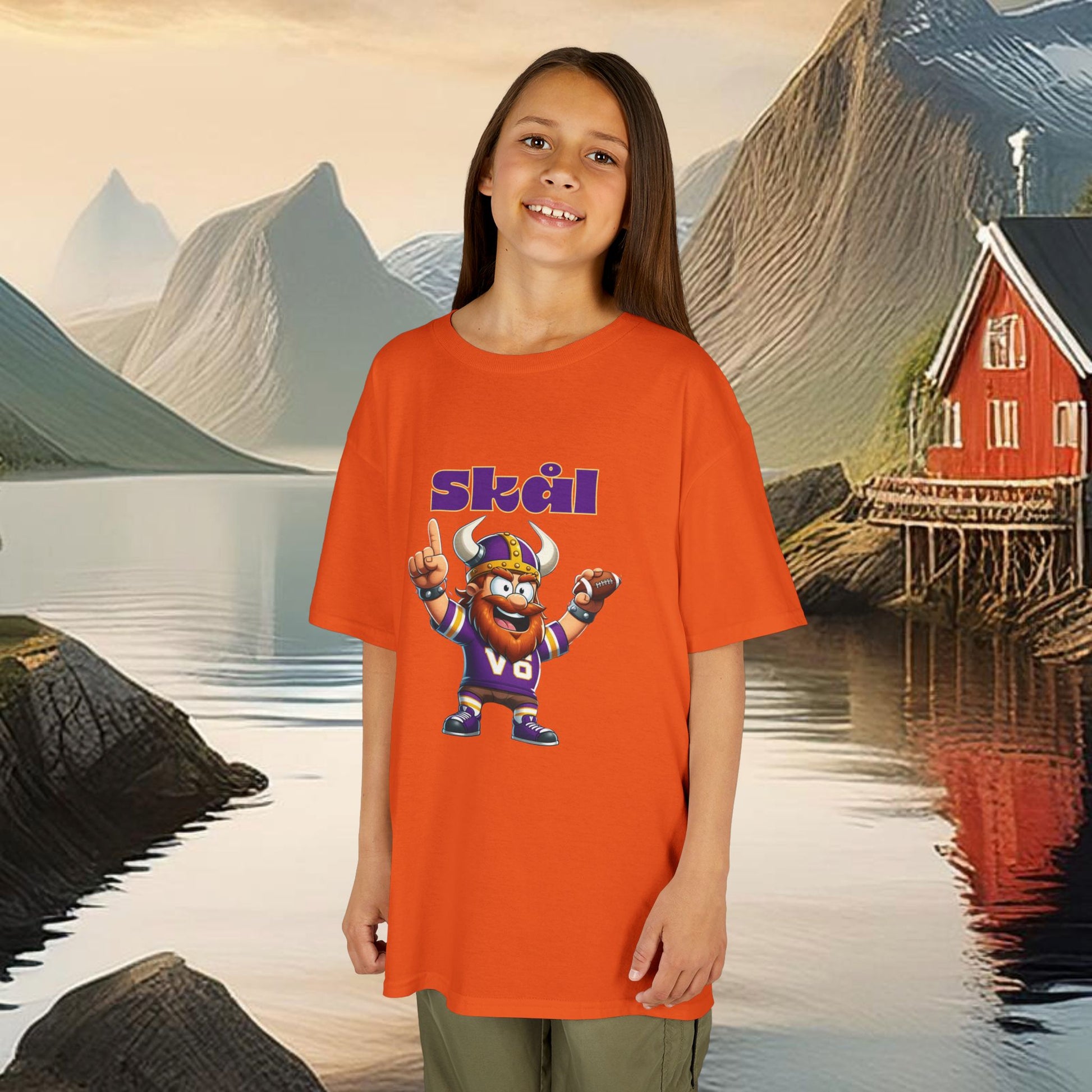 This Minnesota Vikings themed kids heavy cotton tee is perfect for everyday use. The fabric is 100% cotton for solid colors. Polyester is included for heather-color variants. The shoulders have twill tape for improved durability. The collar is curl resistant due to ribbed knitting. There are no seams along the sides.
