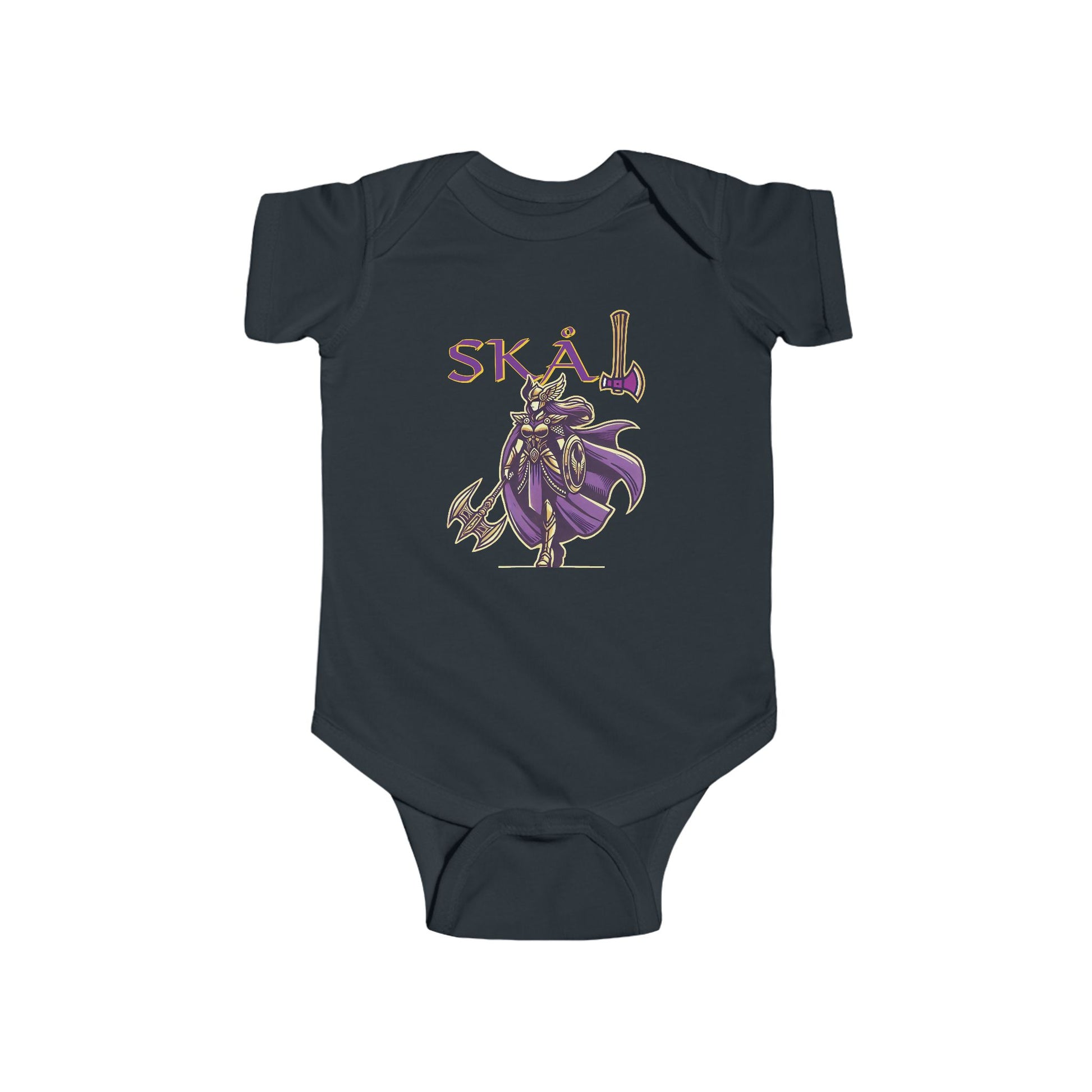 Baby clothing needs to be both durable and soft. With this Minnesota Vikings themed infant fine jersey bodysuit, youths get just that. The fabric is 100% cotton for solid colors. For heather colors, polyester is included. There are seams along the sides of this product. All bindings are made with ribbed knitting for improved durability. There are plastic snaps at the cross closure for easy changing access.