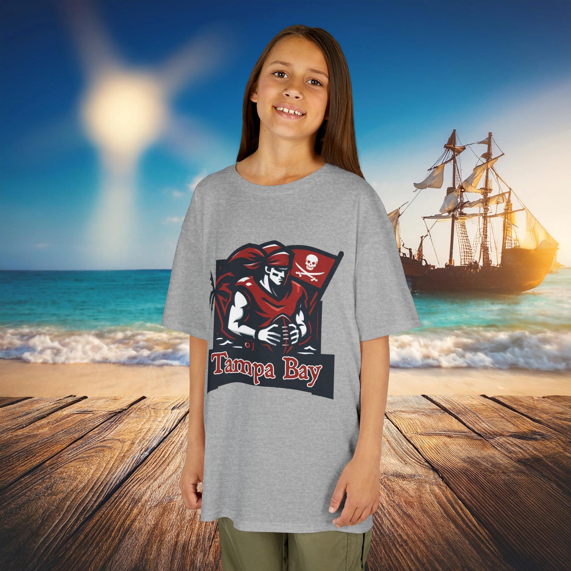 Show your support for the Tampa Bay football team with this NFL-inspired Kids Tee. Made with 100% soft US cotton, this tee is perfect for any young football fan. The classic fit and timeless style make it great for daily wear, while the pearlized tear-away labels ensure comfort. Ideal for children, this tee is REACH certified and ethically produced, making it a sustainable choice for parents.