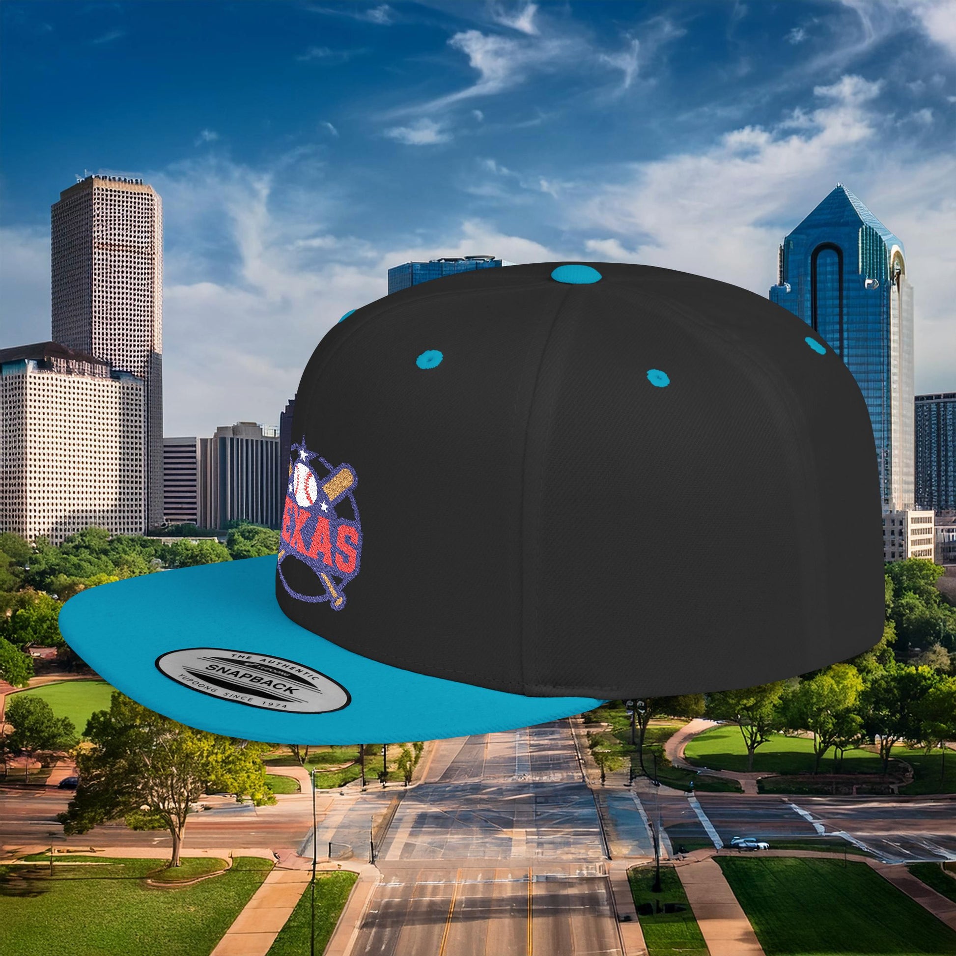 Introducing this Texas Rangers themed ultimate flat bill snapback cap for adults, designed to fit all head sizes perfectly and complete any ensemble. Crafted from a premium blend of 80% acrylic and 20% wool, with the white variant being 100% acrylic, this cap ensures both comfort and durability. Its structured, high-profile, six-panel design gives a sleek and modern look. The flat bill, complemented by a green undervisor, adds a touch of classic style that's both minimal and timeless. The snapback closure provides a customizable fit, making this cap the ideal accessory for any casual outfit.