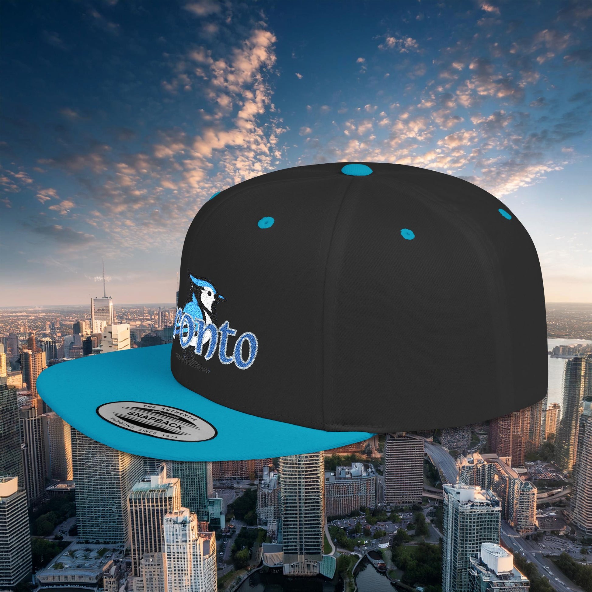 Introducing this Toronto Blue Jays themed ultimate flat bill snapback cap for adults, designed to fit all head sizes perfectly and complete any ensemble. Crafted from a premium blend of 80% acrylic and 20% wool, with the white variant being 100% acrylic, this cap ensures both comfort and durability. Its structured, high-profile, six-panel design gives a sleek and modern look. The flat bill, complemented by a green undervisor, adds a touch of classic style that's both minimal and timeless. The snapback closure provides a customizable fit, making this cap the ideal accessory for any casual outfit.