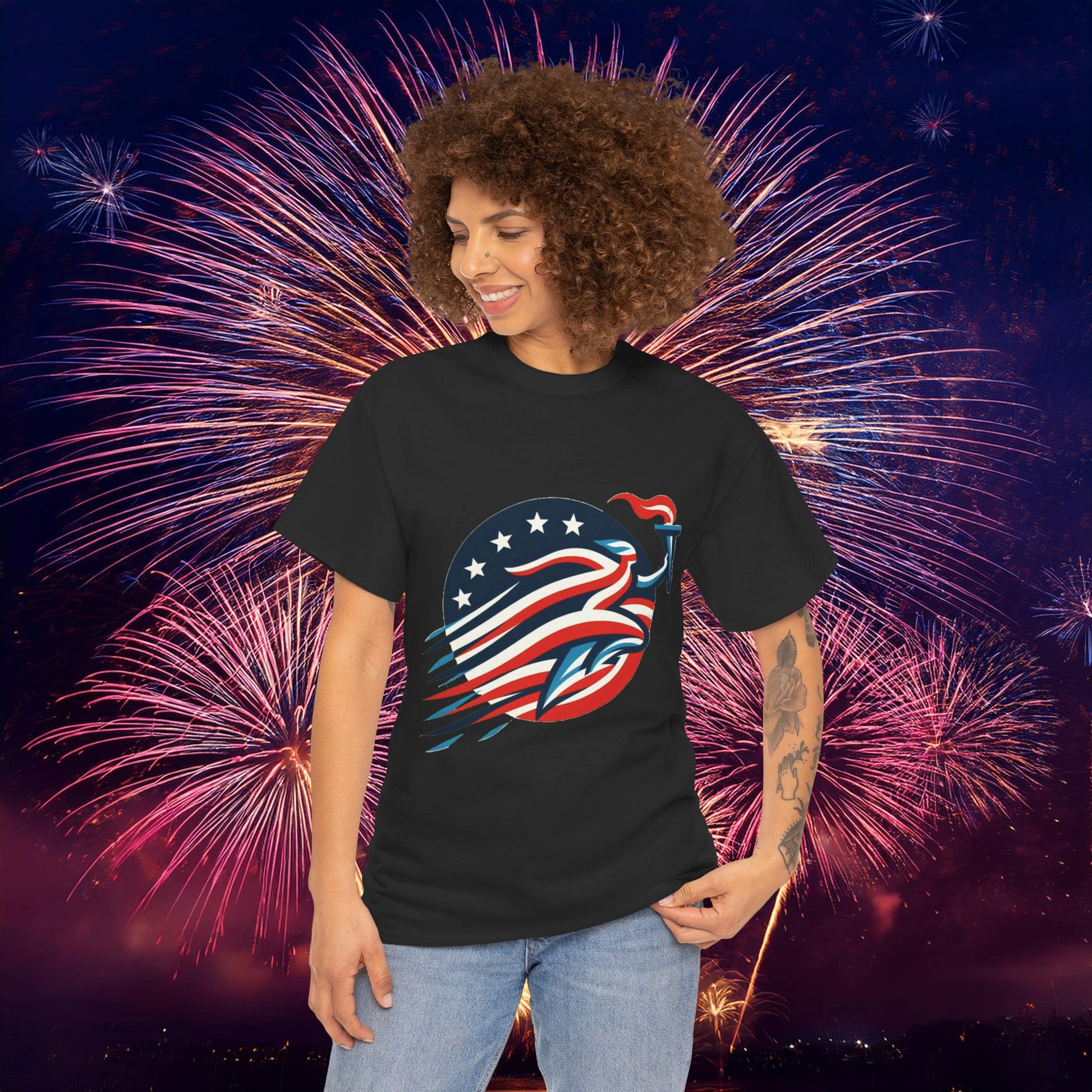 This US Olympic themed heavy cotton tee is the basic staple of any wardrobe. It is the foundation upon which casual fashion grows. The specially spun fibers provide a smooth surface for premium printing vividity and sharpness. No side seams mean there are no itchy interruptions under the arms. The shoulders have tape for improved durability.