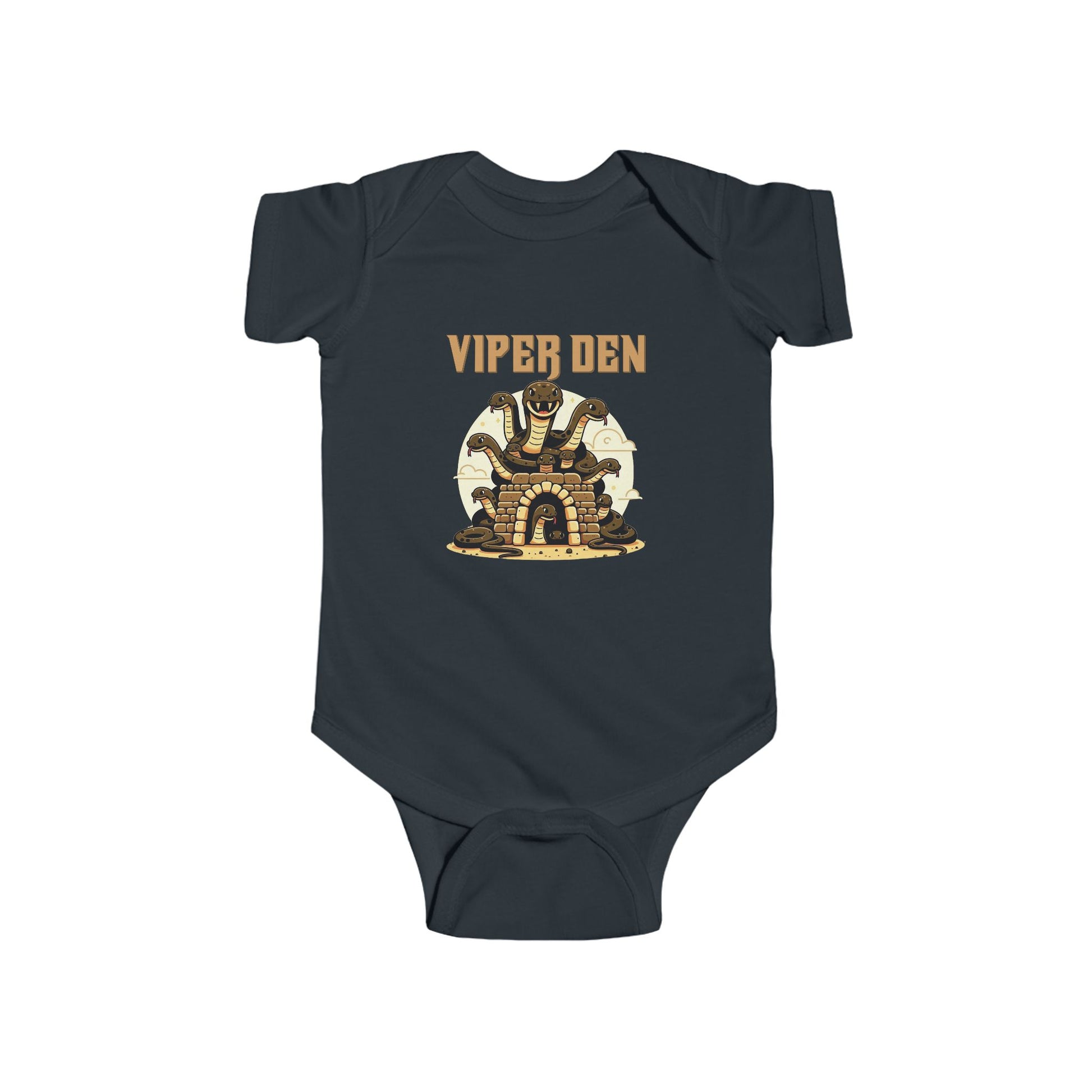 Baby clothing needs to be both durable and soft. With this Viper Den infant fine jersey bodysuit, youths get just that. The fabric is 100% cotton for solid colors. For heather colors, polyester is included. There are seams along the sides of this product. All bindings are made with ribbed knitting for improved durability. There are plastic snaps at the cross closure for easy changing access.