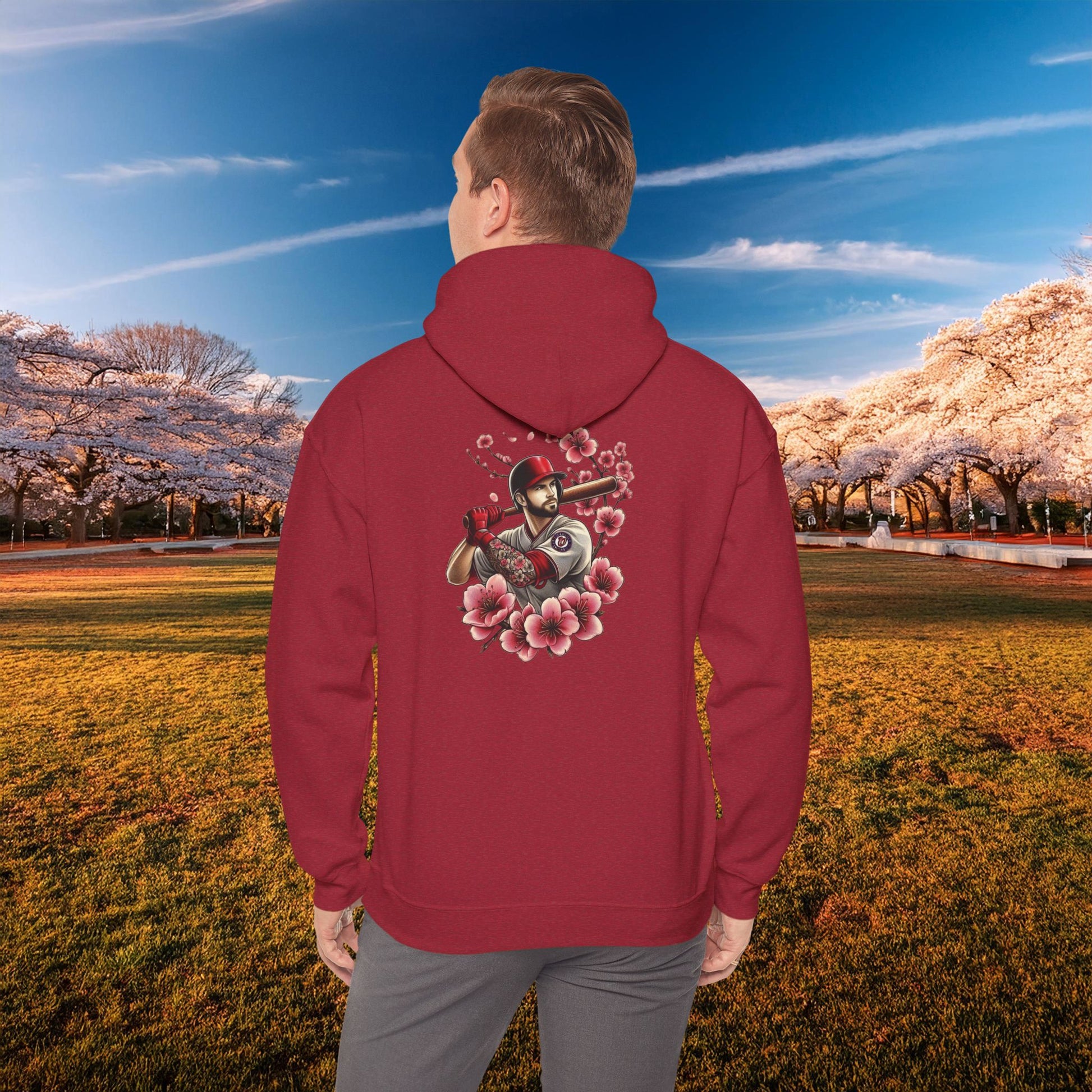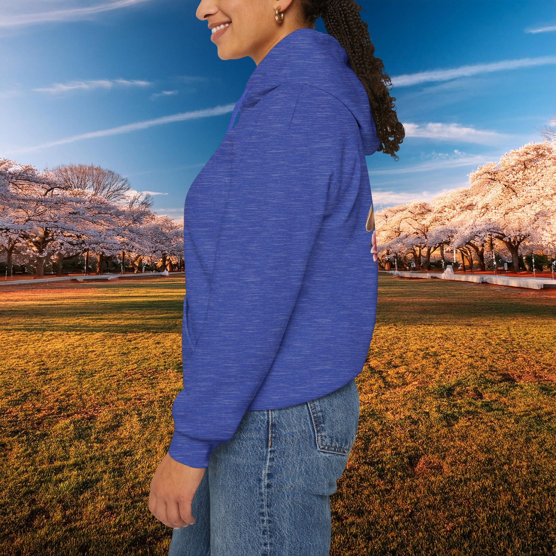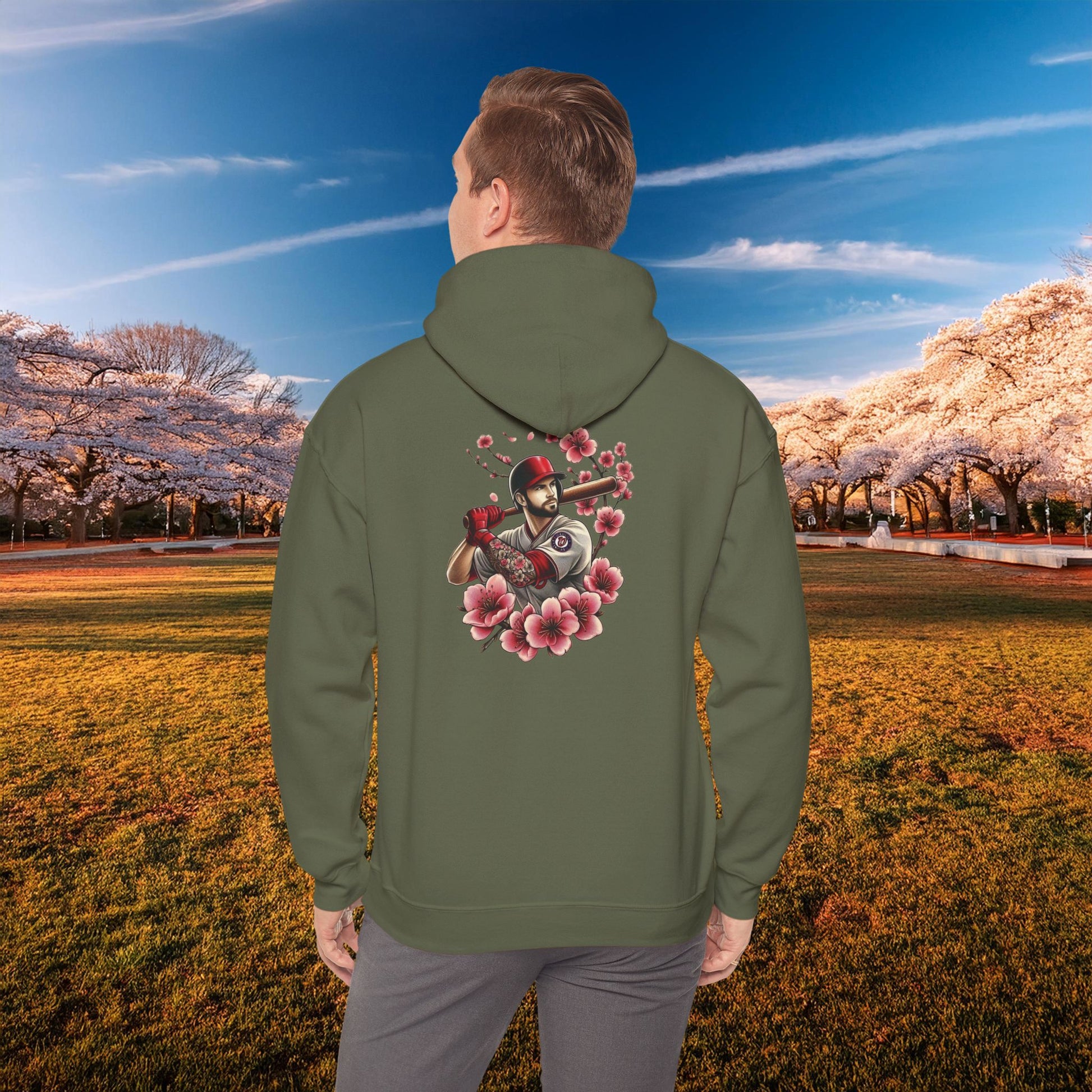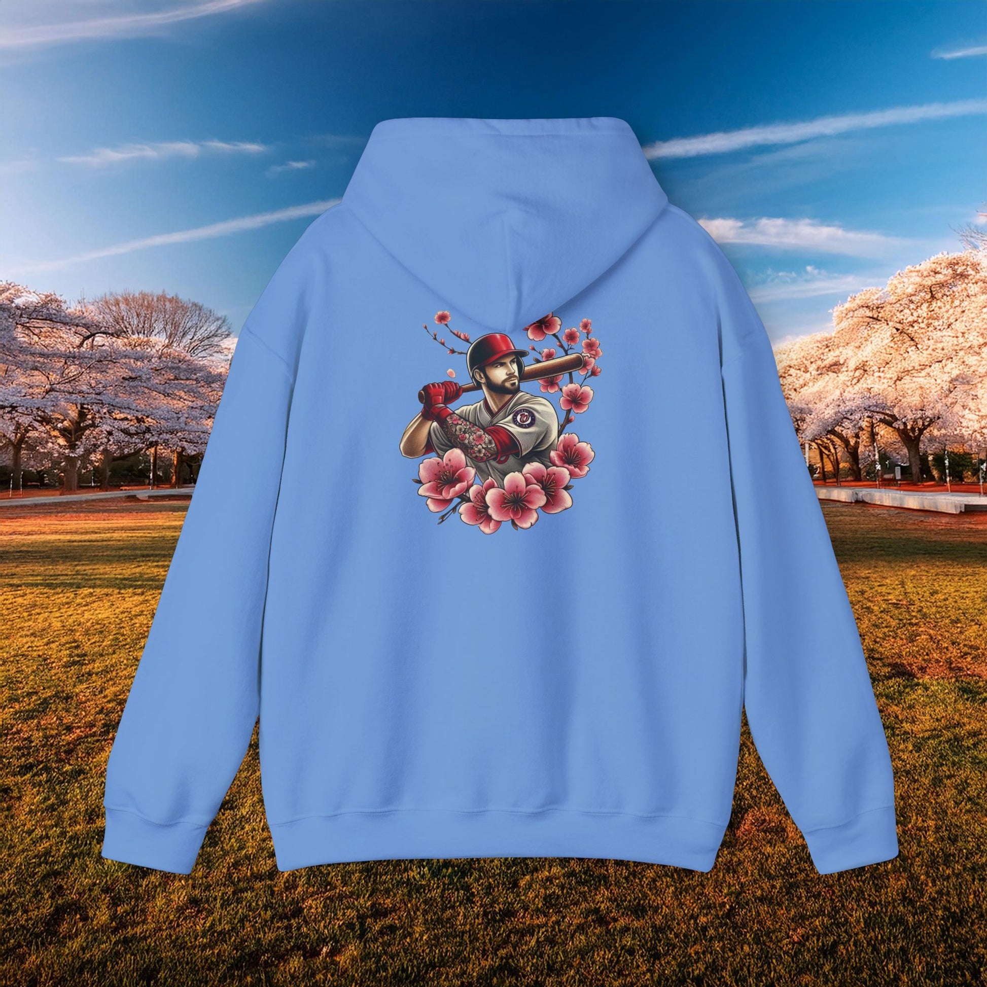 This Washington Nationals themed heavy blend hooded sweatshirt is relaxation itself. Made with a thick blend of cotton and polyester, it feels plush, soft and warm, a perfect choice for any cold day. In the front, the spacious kangaroo pocket adds daily practicality while the hood's drawstring is the same color as the base sweater for extra style points.