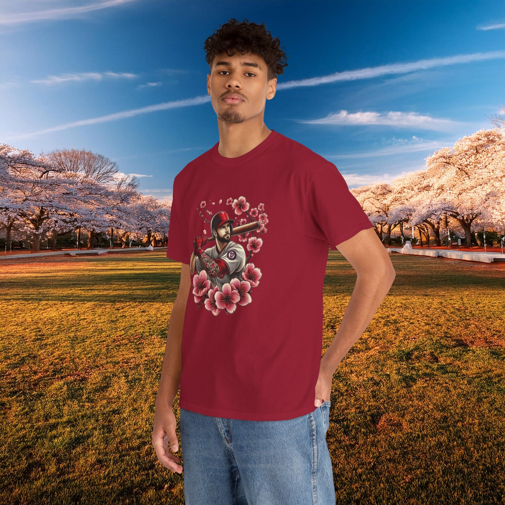 This Washington Nationals themed heavy cotton tee is the basic staple of any wardrobe. It is the foundation upon which casual fashion grows. The specially spun fibers provide a smooth surface for premium printing vividity and sharpness. No side seams mean there are no itchy interruptions under the arms. The shoulders have tape for improved durability.