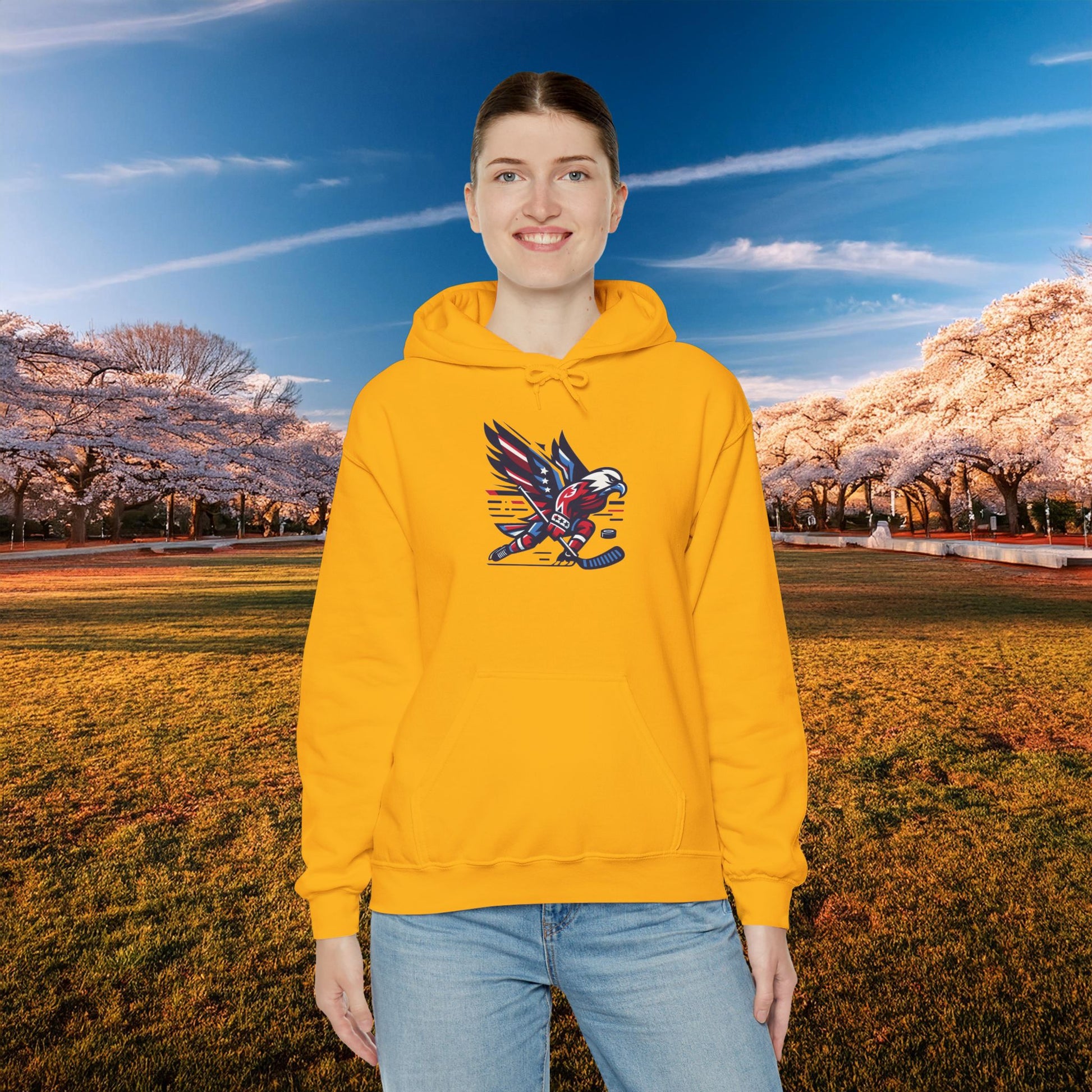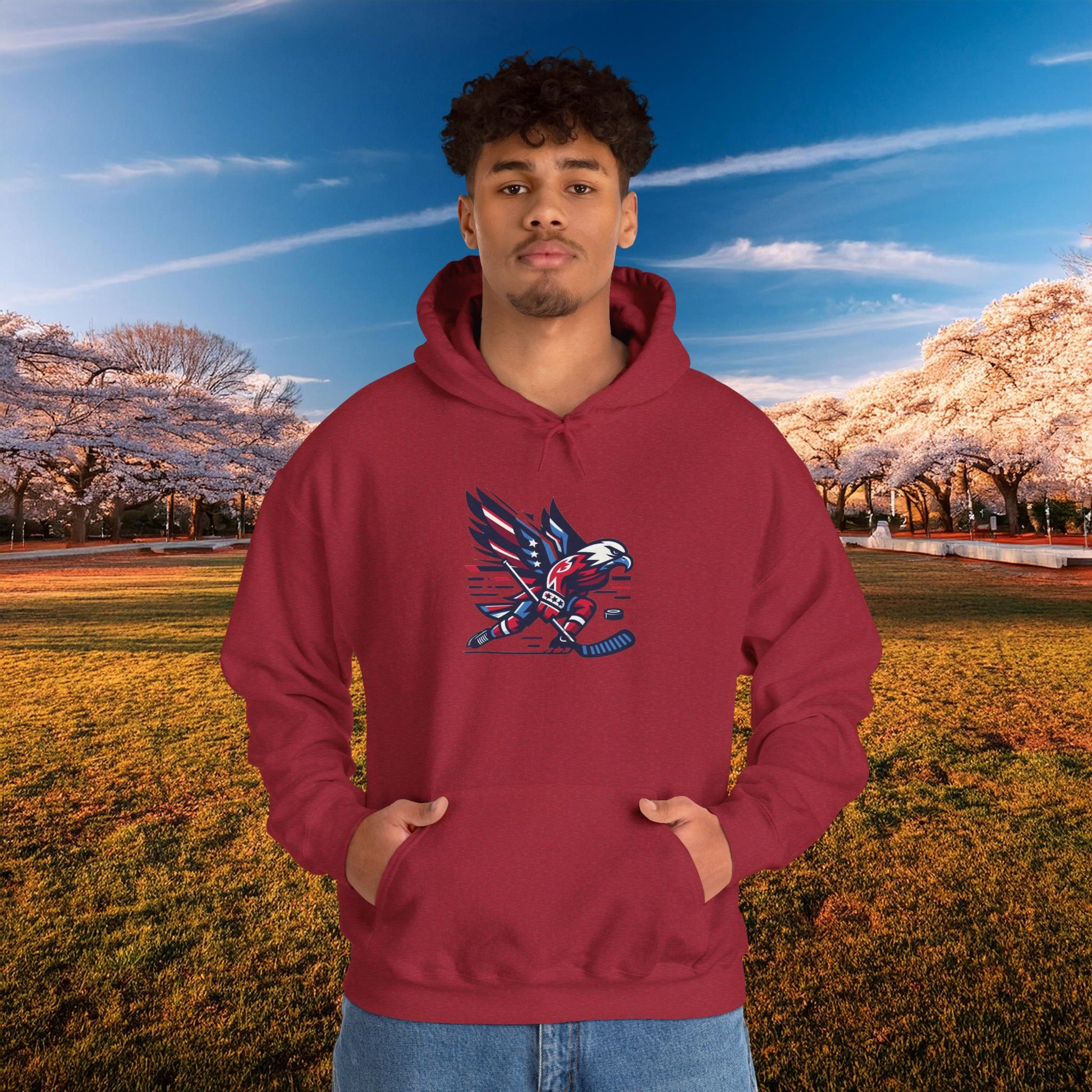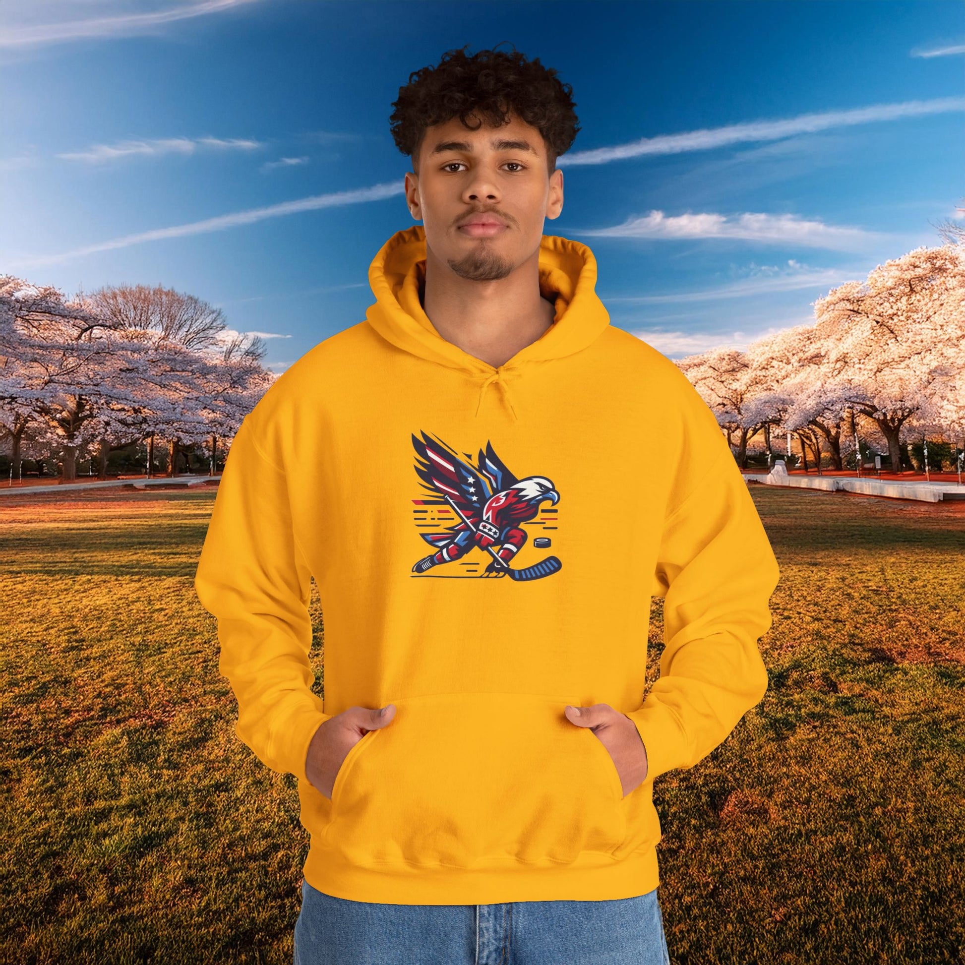 This Washington Capitals themed heavy blend hooded sweatshirt is relaxation itself. Made with a thick blend of cotton and polyester, it feels plush, soft and warm, a perfect choice for any cold day. In the front, the spacious kangaroo pocket adds daily practicality while the hood's drawstring is the same color as the base sweater for extra style points.