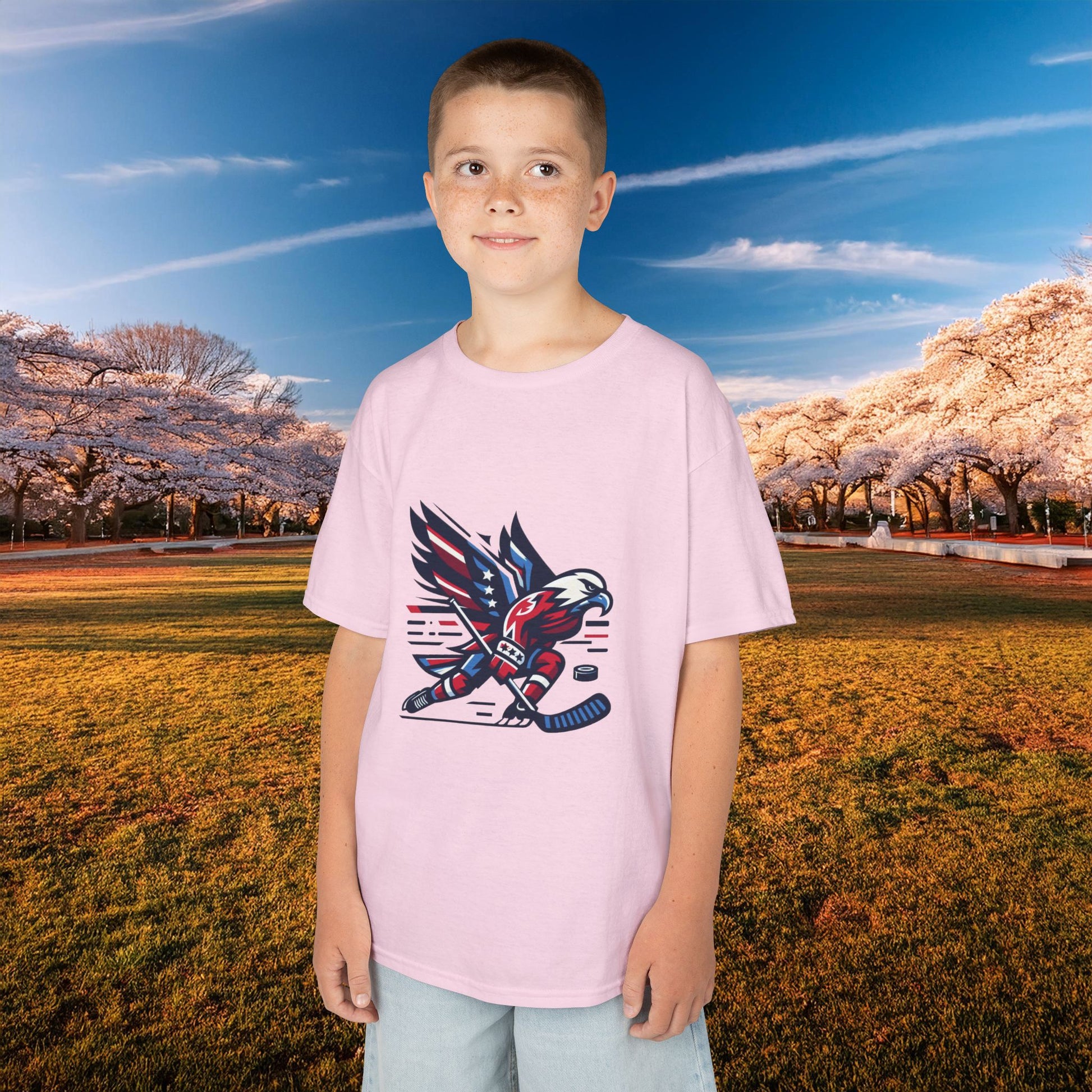 This Washington Capitals themed kids heavy cotton tee is perfect for everyday use. The fabric is 100% cotton for solid colors. Polyester is included for heather-color variants. The shoulders have twill tape for improved durability. The collar is curl resistant due to ribbed knitting. There are no seams along the sides.