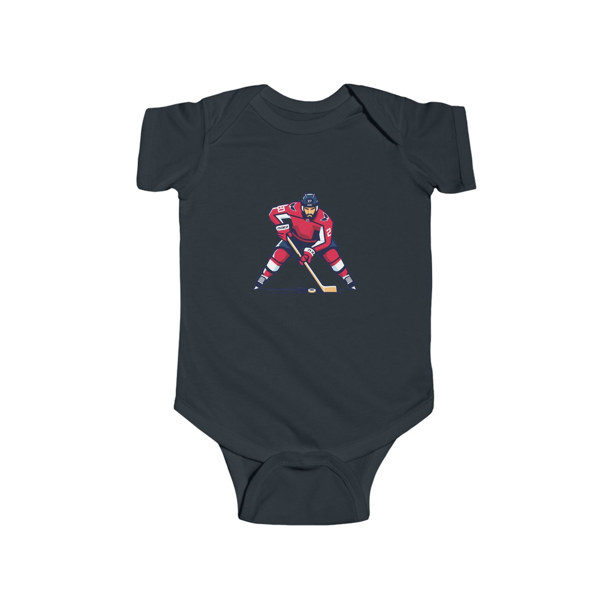 Baby clothing needs to be both durable and soft. With this Washington Capitals themed infant fine jersey bodysuit, youths get just that. The fabric is 100% cotton for solid colors. For heather colors, polyester is included. There are seams along the sides of this product. All bindings are made with ribbed knitting for improved durability. There are plastic snaps at the cross closure for easy changing access.