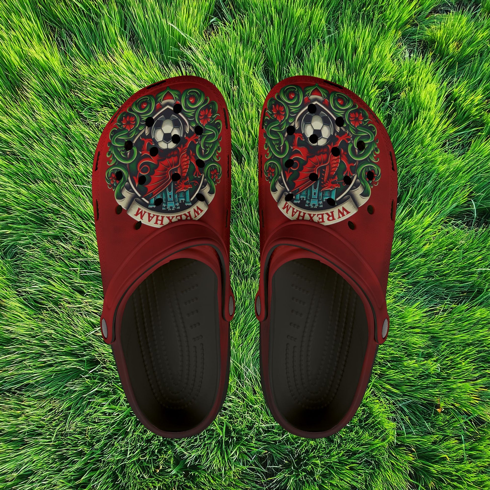 Created to make your every step feel like cloudy bliss, these Wrexham themed clogs are exactly what your feet need to stay comfortable all day long. Featuring EVA foam, they feel plush and help absorb the shock of hard surfaces while also providing excellent support for your arches. Their all-over-print design, makes them very unique and helps put your dazzling personality on display.
