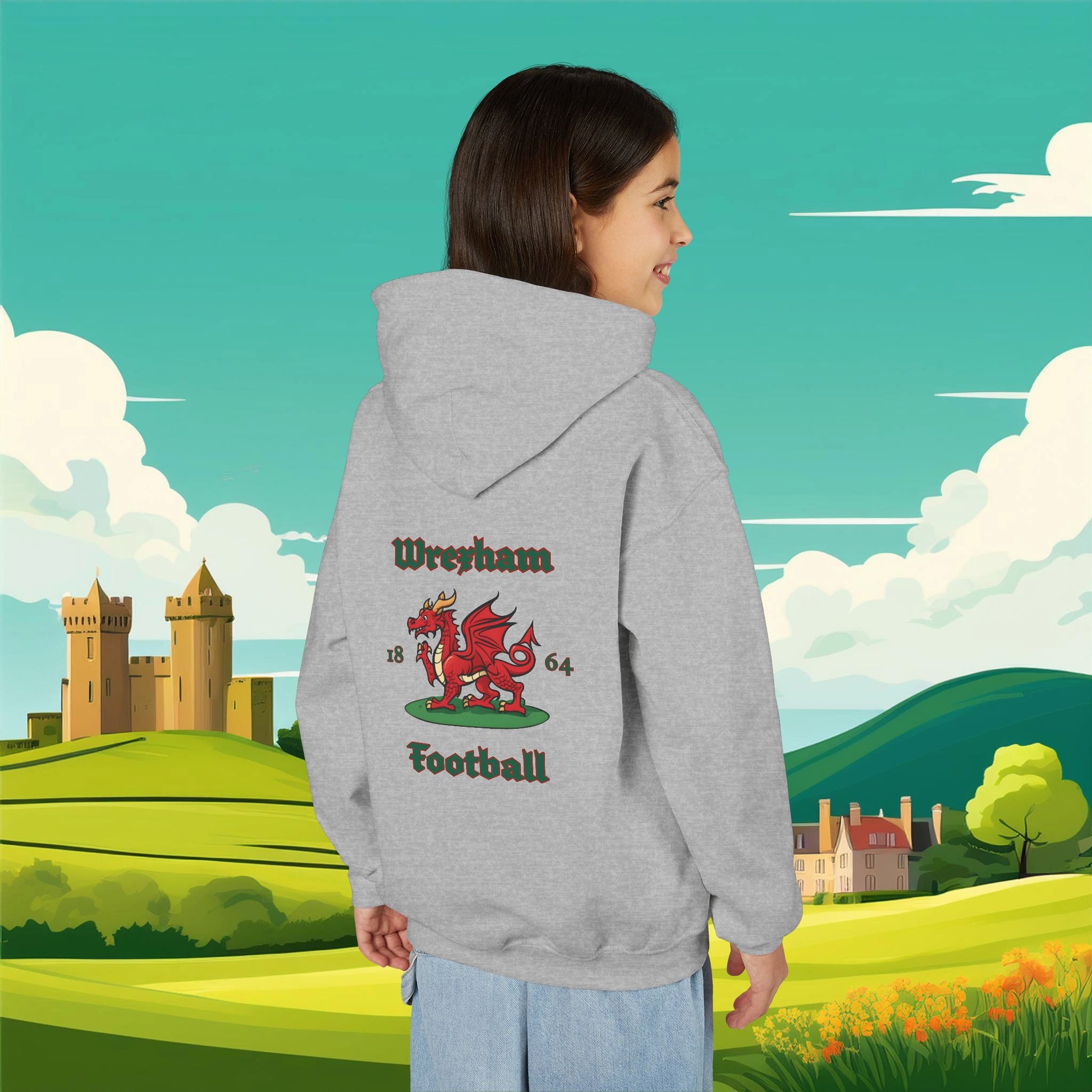 This Wrexham themed youth blend hooded sweatshirt is made of ultra-soft, preshrunk fleece that feels wonderful against the skin. The garment is 50% cotton 50% polyester with reduced lint buildup. The front has a kangaroo pocket big enough for both hands. The neck is reinforced with twill taping.