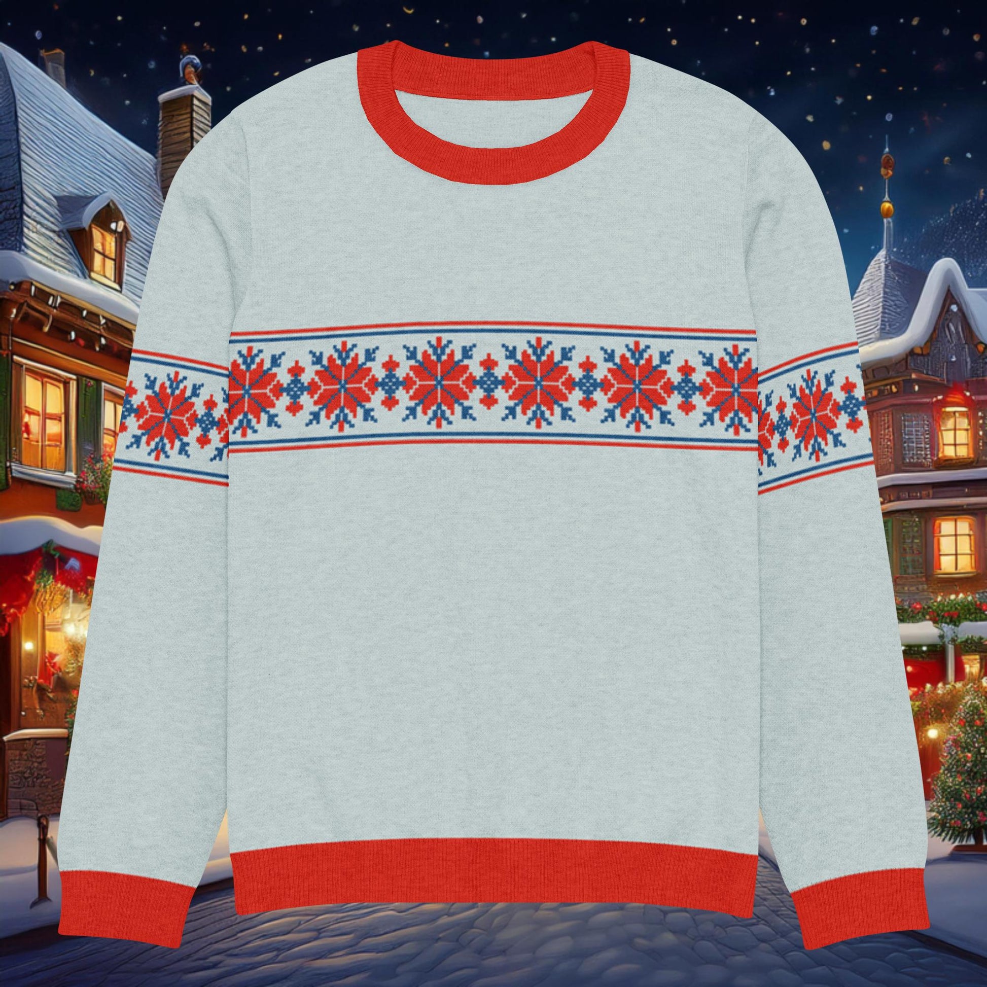 Warm up your winter wardrobe with this Yuletide Ember Knitted Sweater — a timeless blend of cozy comfort and bold seasonal style. This soft knit features a classic snowflake pattern woven in vivid red and blue across a cool base, creating the perfect balance of festive charm and everyday wearability.
