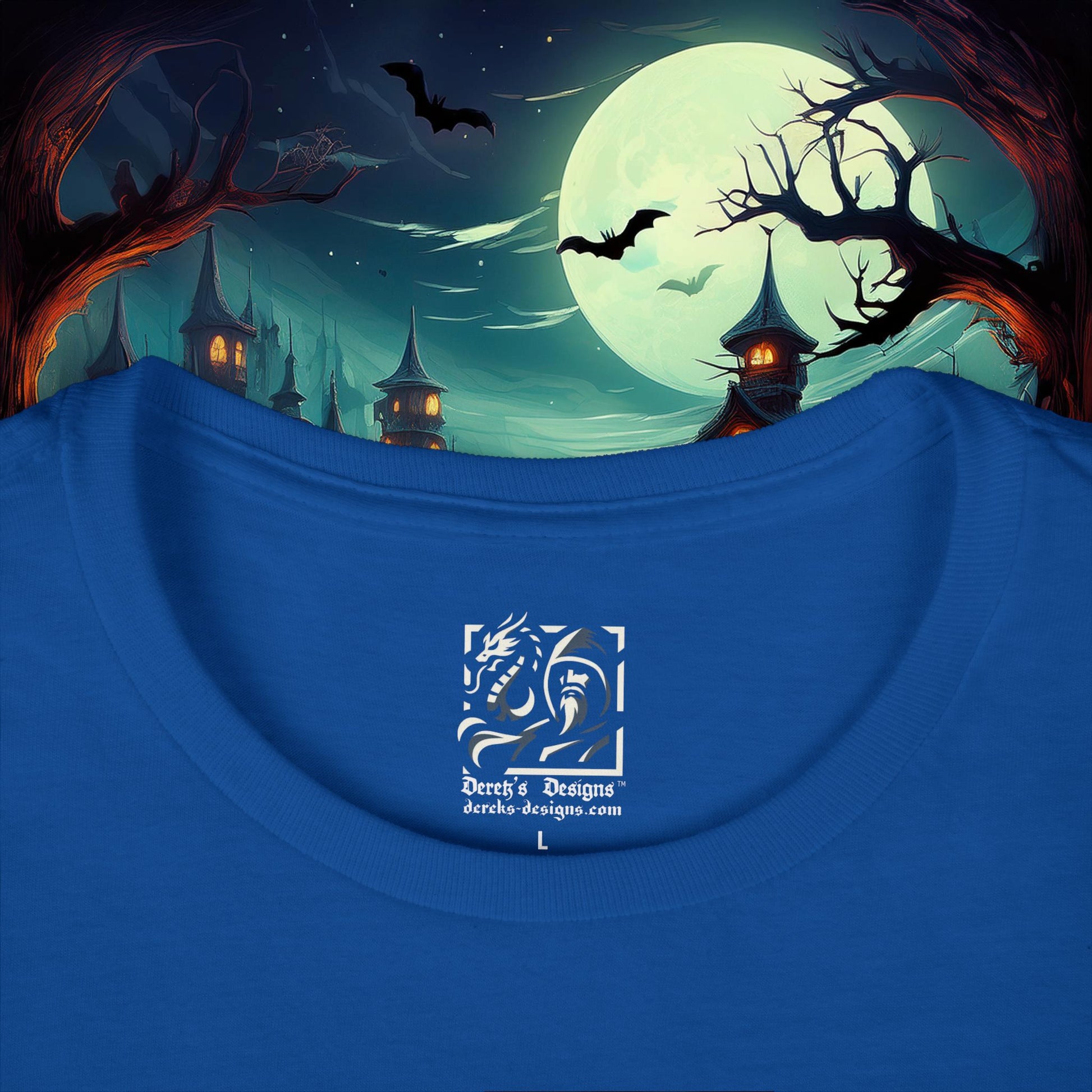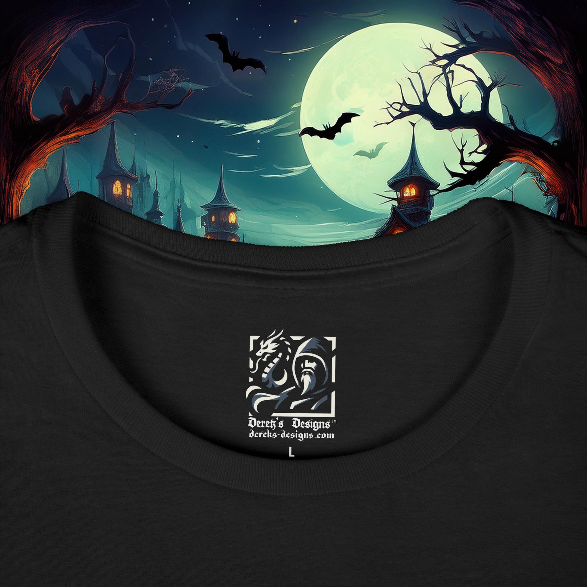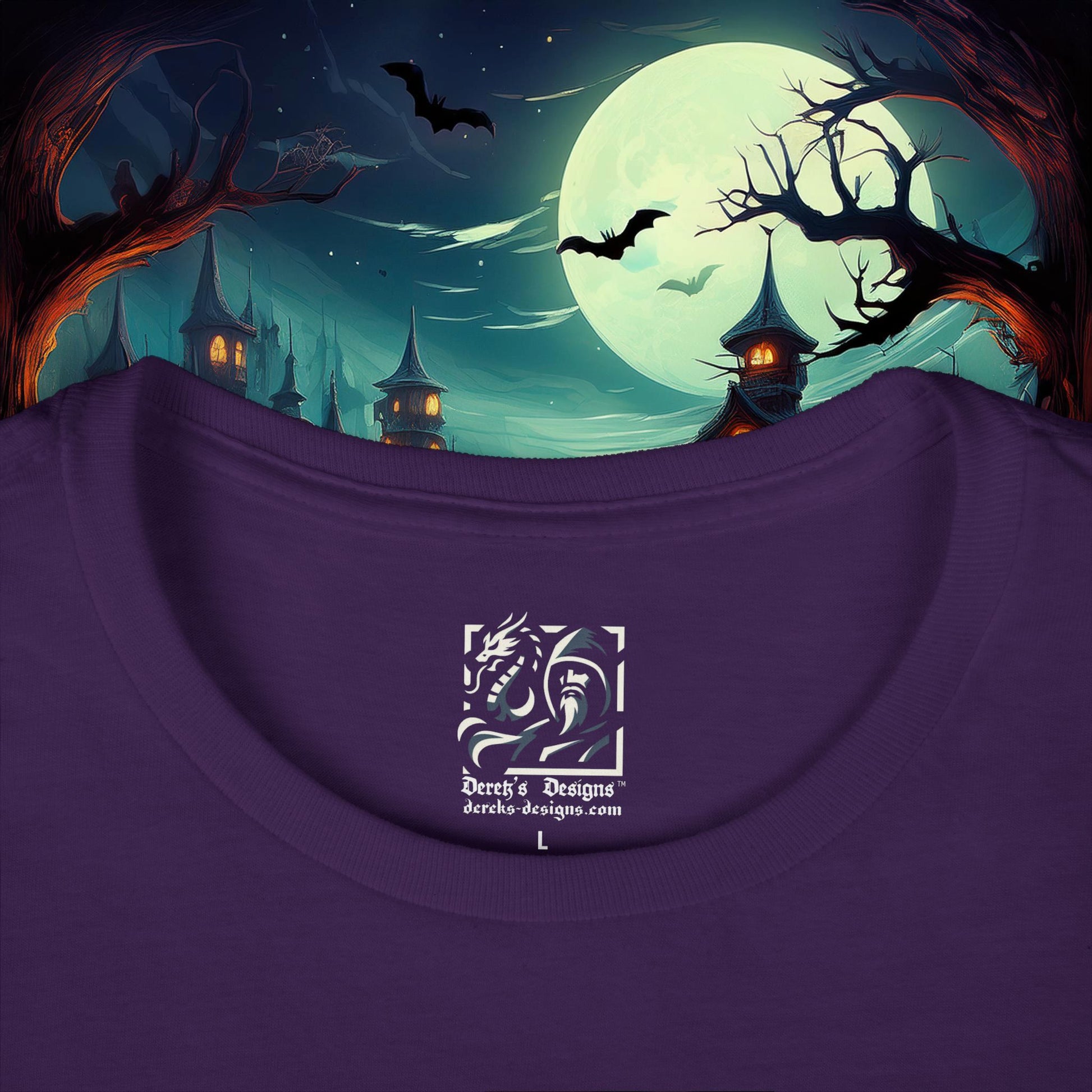 This Halloween themed woman's softstyle tee is a more feminine take on the classic tee. The sleeves are shortened to reveal some shoulder. The fabric is 100% ringspun cotton for all solid colors. The shoulders are taped with twill to prolong durability. The collar seam is reinforced with ribbed knitting.